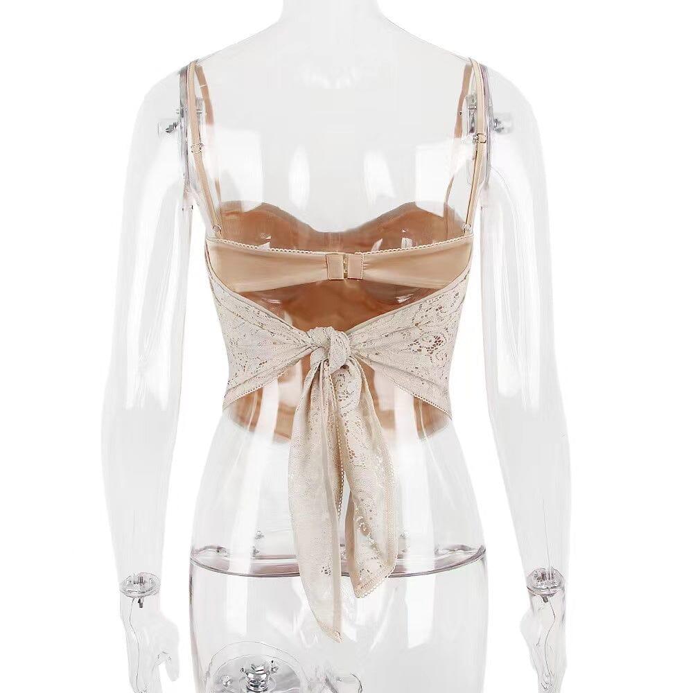 - The top has a delicate internal bra that provides support and eliminates the need for additional undergarments.
