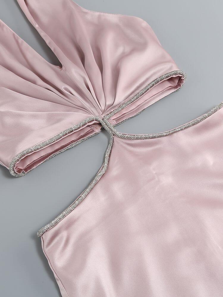 This flirty CROSS OVER CUT OUT SATIN MINI DRESS is bound to make heads turn! It's soft. pink fabric hugs curves in all the right places. Dare to show off a bit of skin and take your style to the next level. Make a statement with this cutie and show 'em what you've got!!