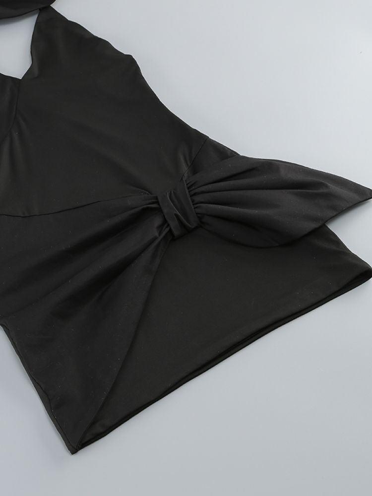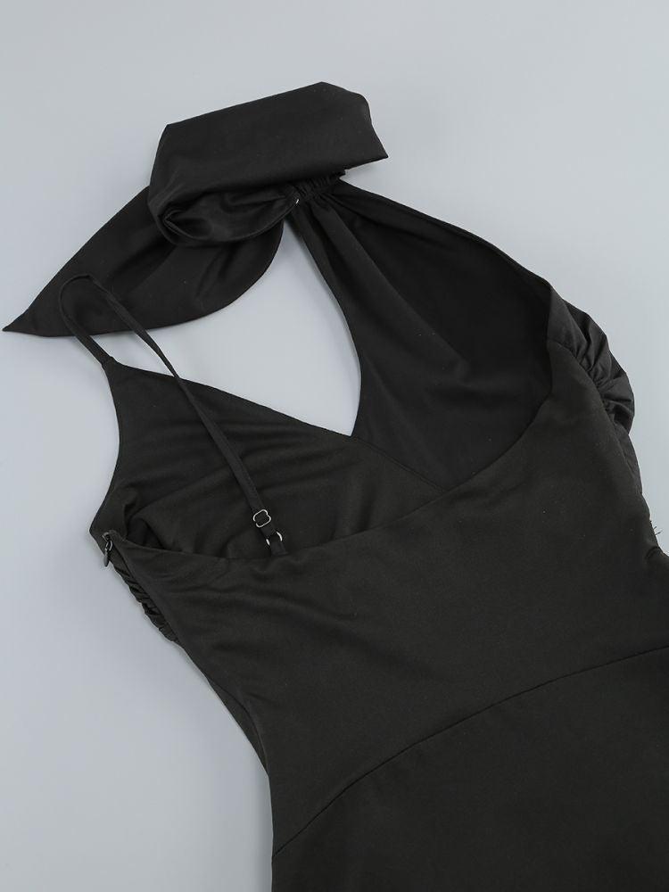Featuring a unique crossover-neck design. this mini dress will make you stand out in the best way possible. Comfortable and chic. this dress is the perfect choice for any event.