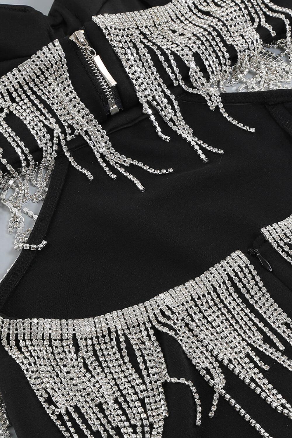 Looking to elevate your fashion game? The Crystal Maxi Dress in Black is the perfect choice. With its stunning design and attention to detail. this dress is sure to make you the center of attention at any occasion.