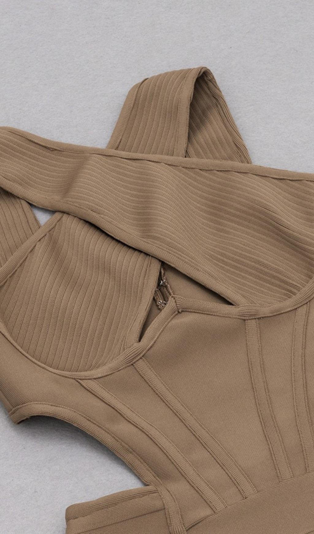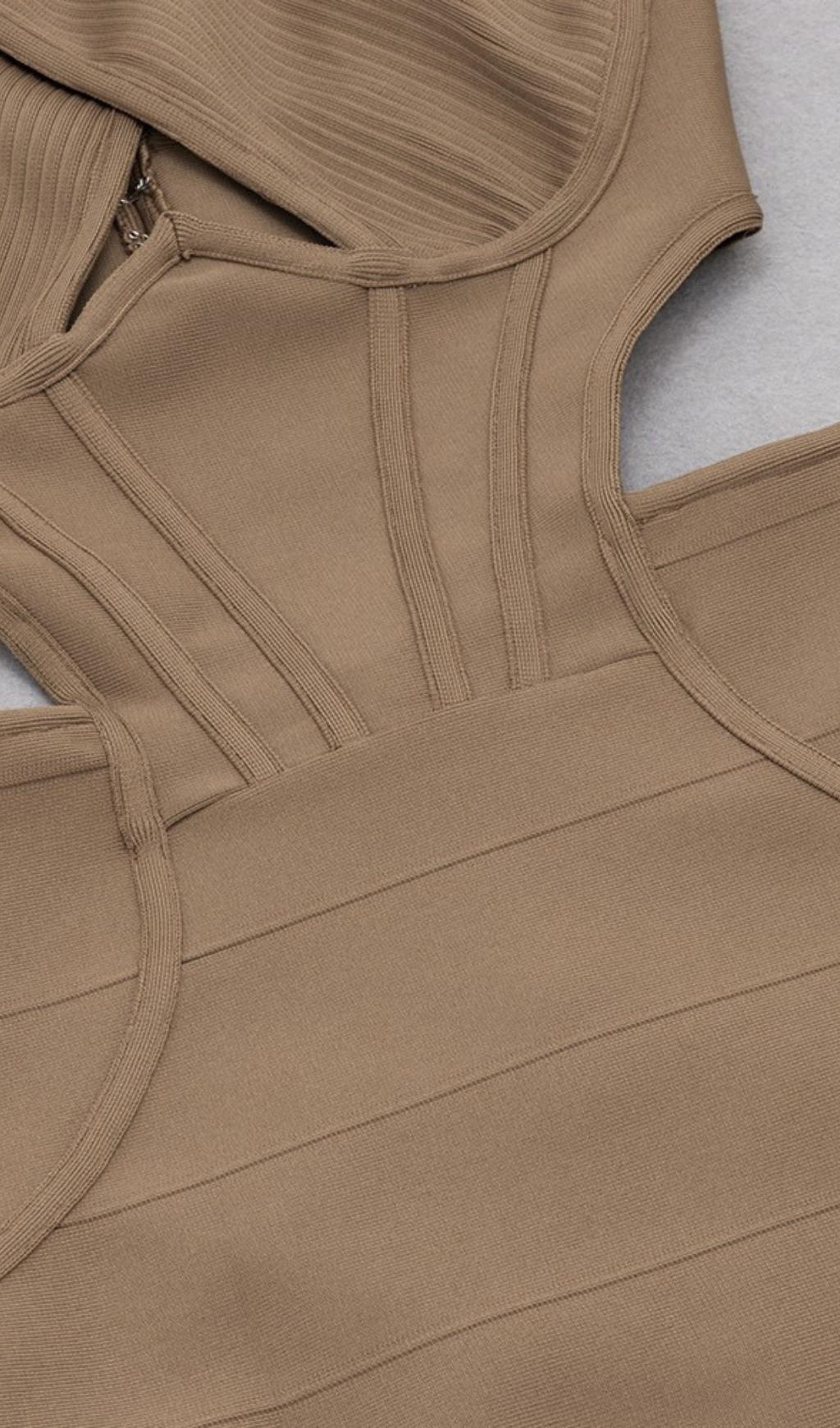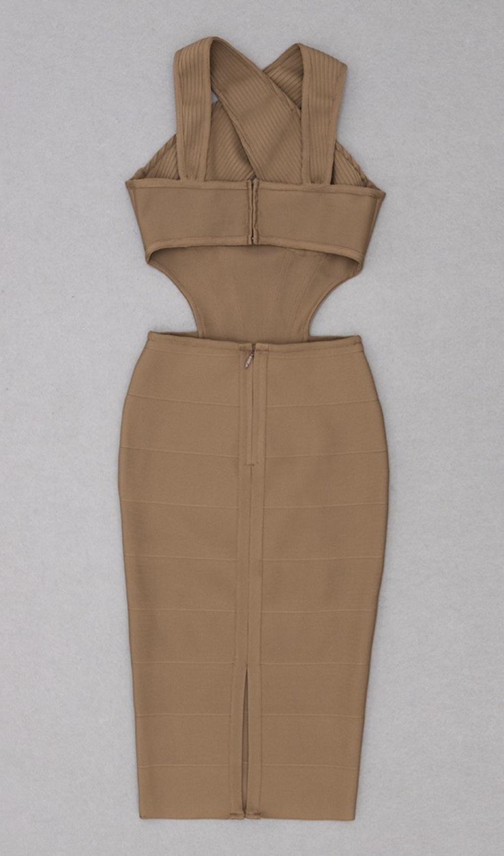 This Cut Out Bodycon Midi Dress is the epitome of femininity and elegance. With its stunning silhouette and unique design. it is sure to turn heads wherever you go. The dress features a beautiful cut-out detail at the waist. creating a corset-like effect that accentuates your curves. The tight wrap around the hips adds a touch of sensuality. while still maintaining a sophisticated look.