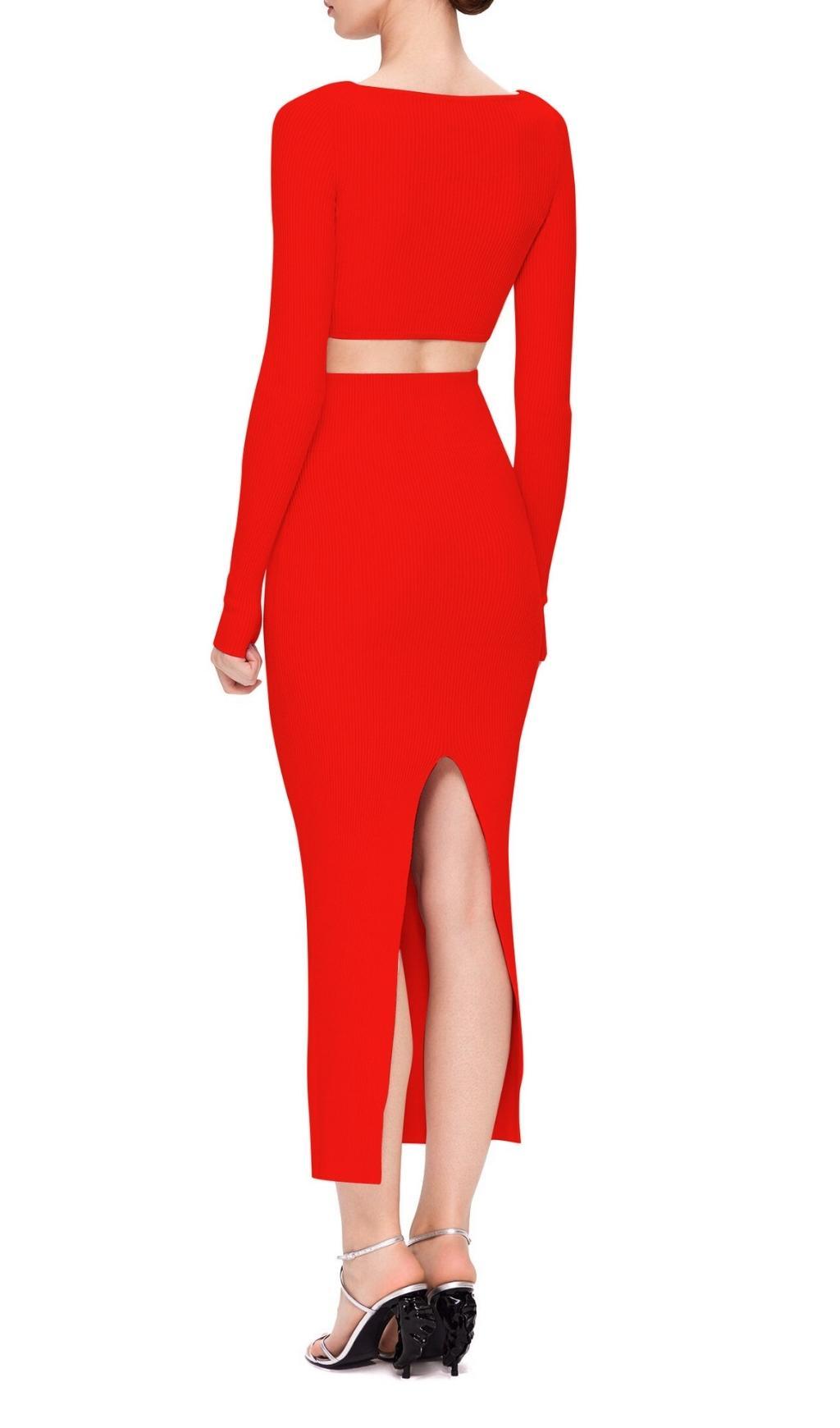 Introducing our stunning Cutout Long Sleeve Midi Dress in Red. This dress is designed to make you feel sexier and more attractive. giving you a confidence boost like no other. With its unique cut design. you'll shine like the most dazzling star in any crowd.