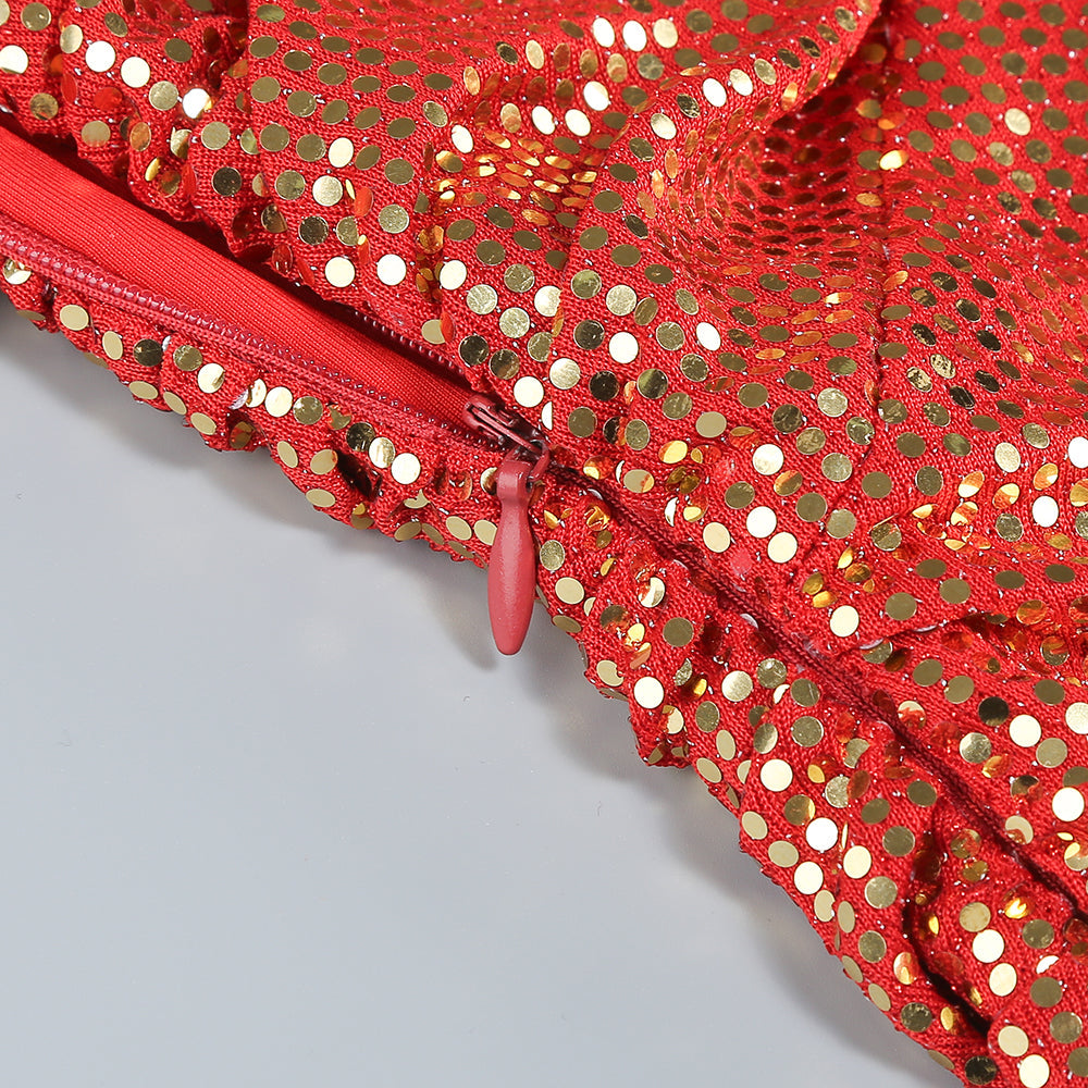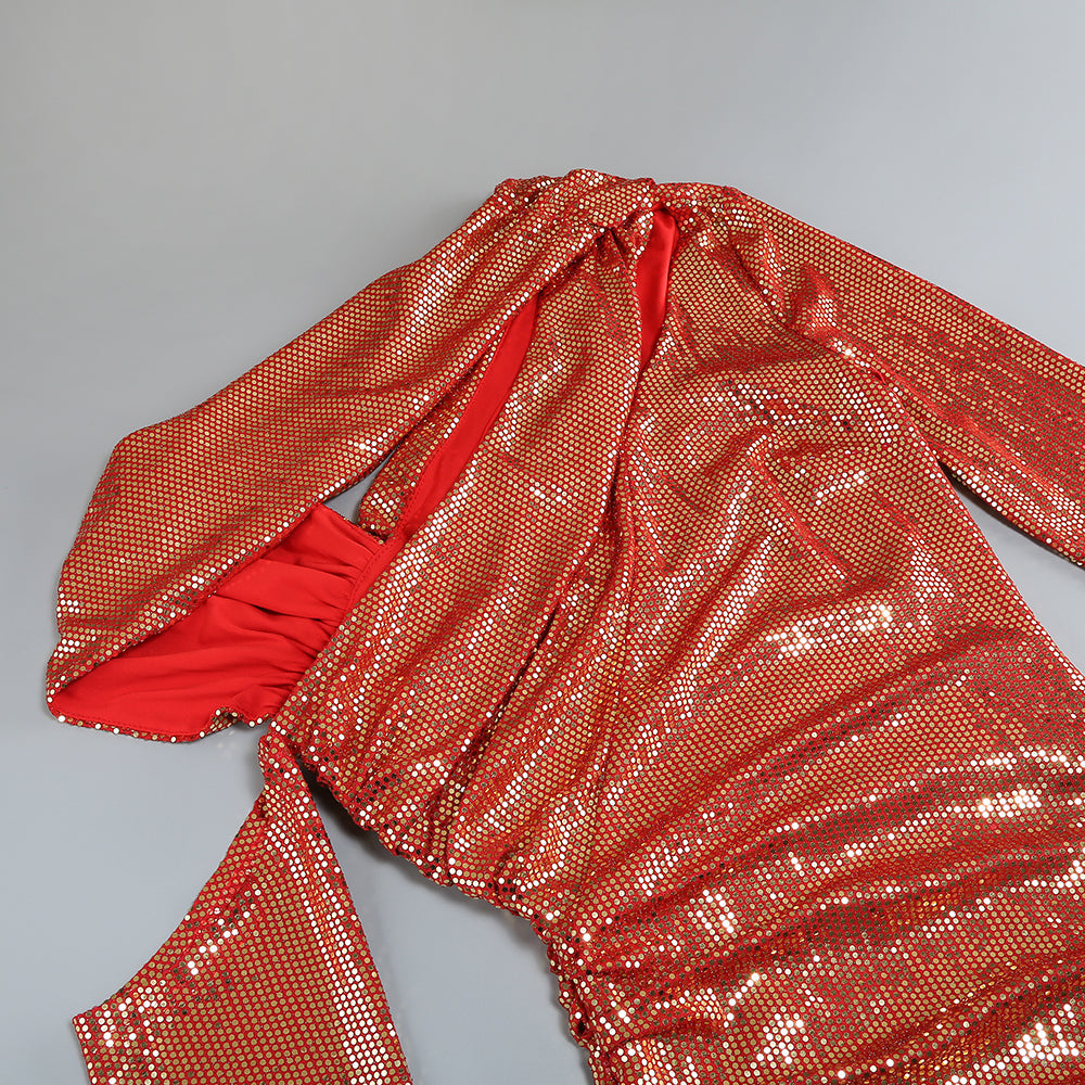 The unique cutout and ruched design. along with the sparkling sequins. will make you stand out from the crowd. The slit adds a touch of sophistication. making it perfect for any formal event.