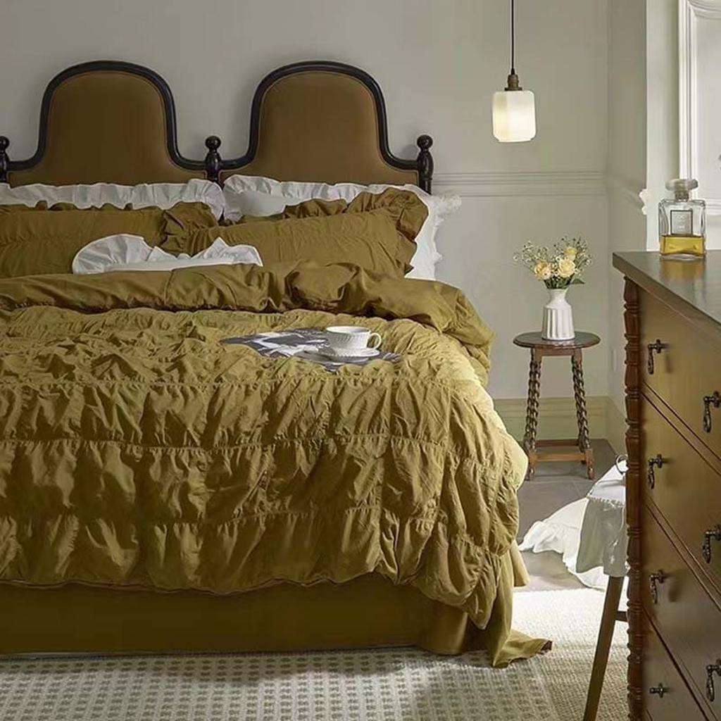 Imagine your bed looking like it's straight out of a classic novel. This duvet cover has a deep. rich color and a ruched design that adds a touch of old-school charm. It's perfect if you love a bit of vintage flair and want your bedroom to feel extra cozy and stylish.