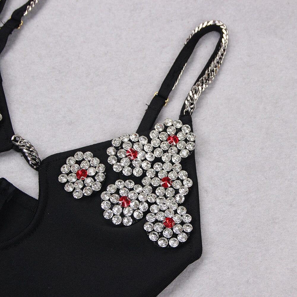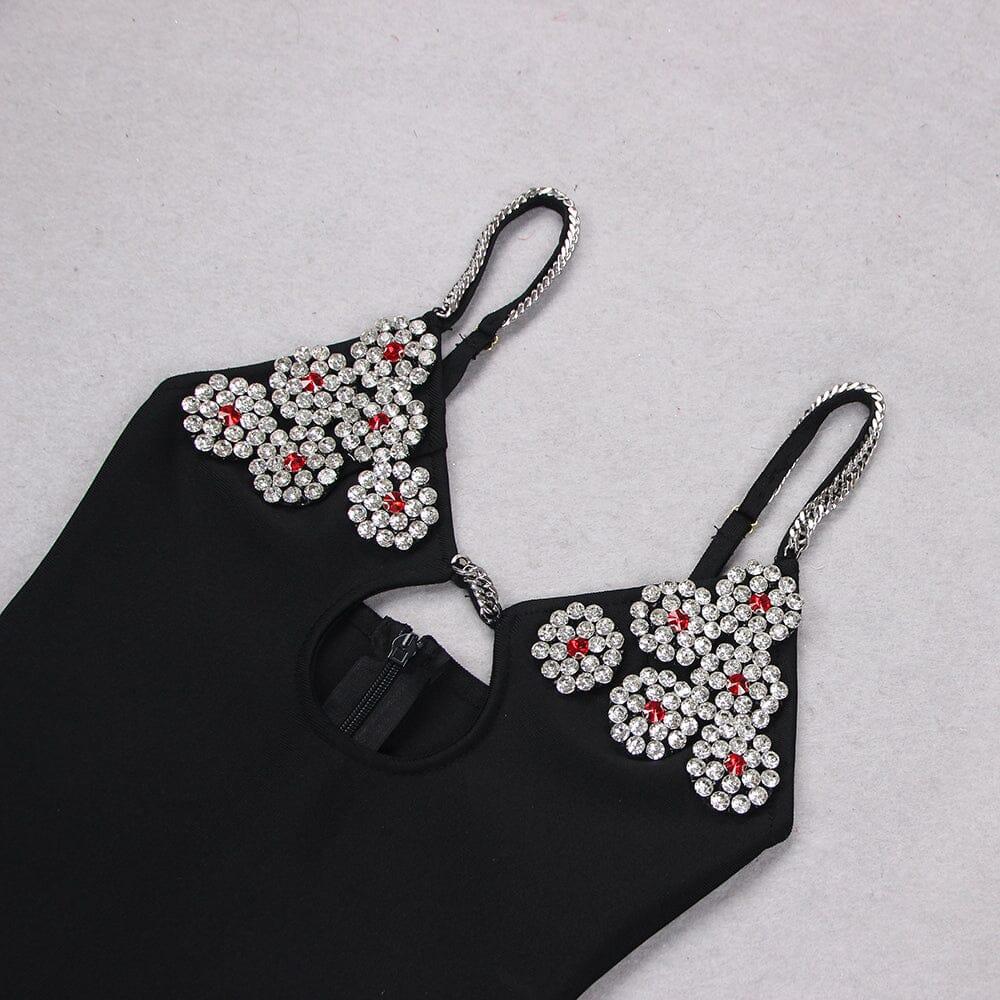 Elevate your style and make a lasting impression with our Diamond Hollow Mini Dress in Black. Get ready to exude confidence and beauty with every step you take. Order yours today!