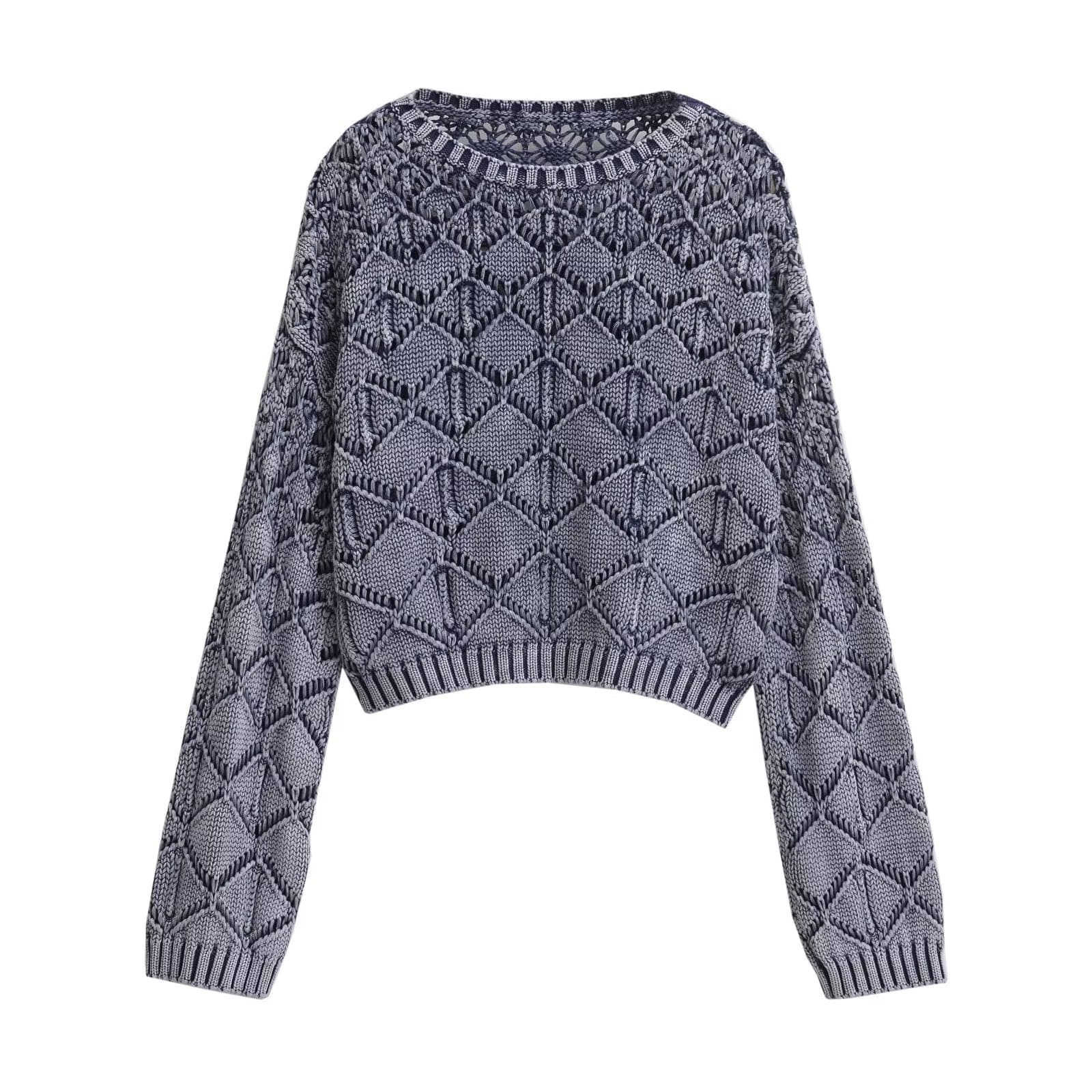 This Ebony Washed Blue Sweater features a geometric hollow out design in a classic crew neck. Crafted with a washed blue hue. this sweater is sure to provide a modern look perfect for any occasion.