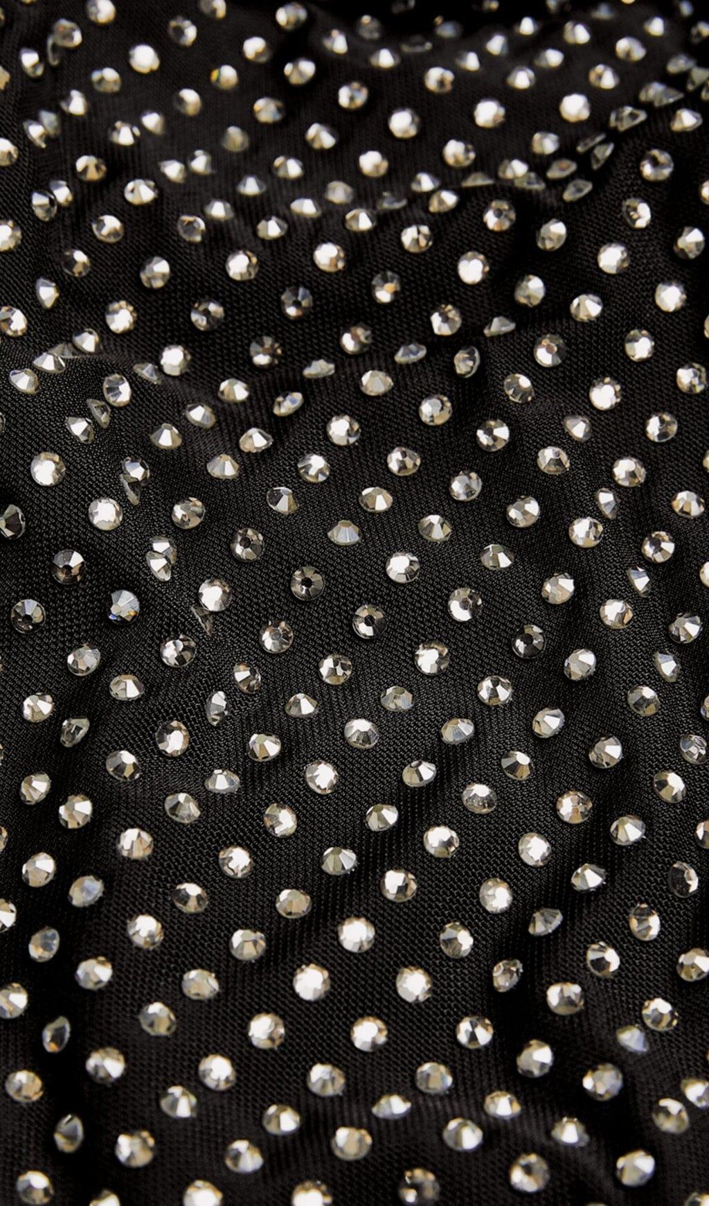 Choose the ENBELLISHED MESH MIDI DRESS IN BLACK and let your style shine with its unique and audacious design. Embrace your inner fashionista and make a statement wherever you go.
