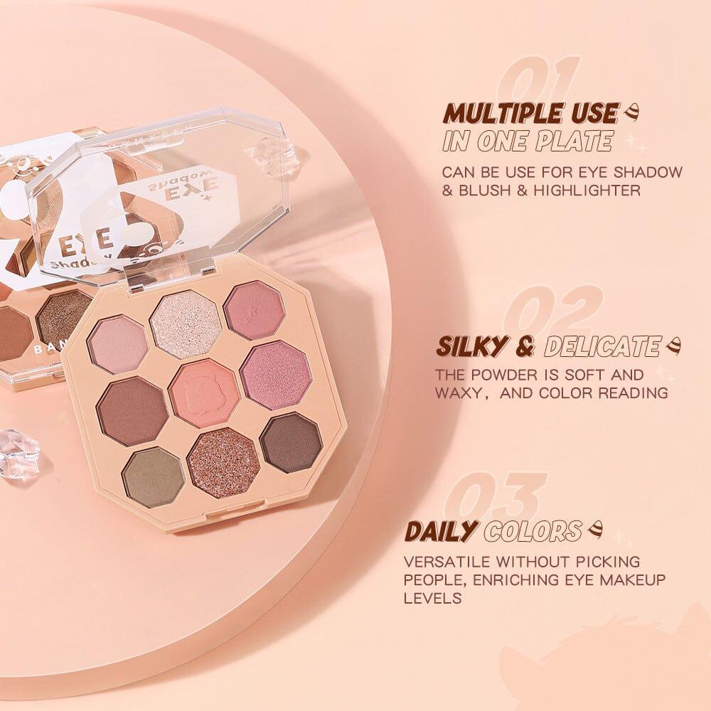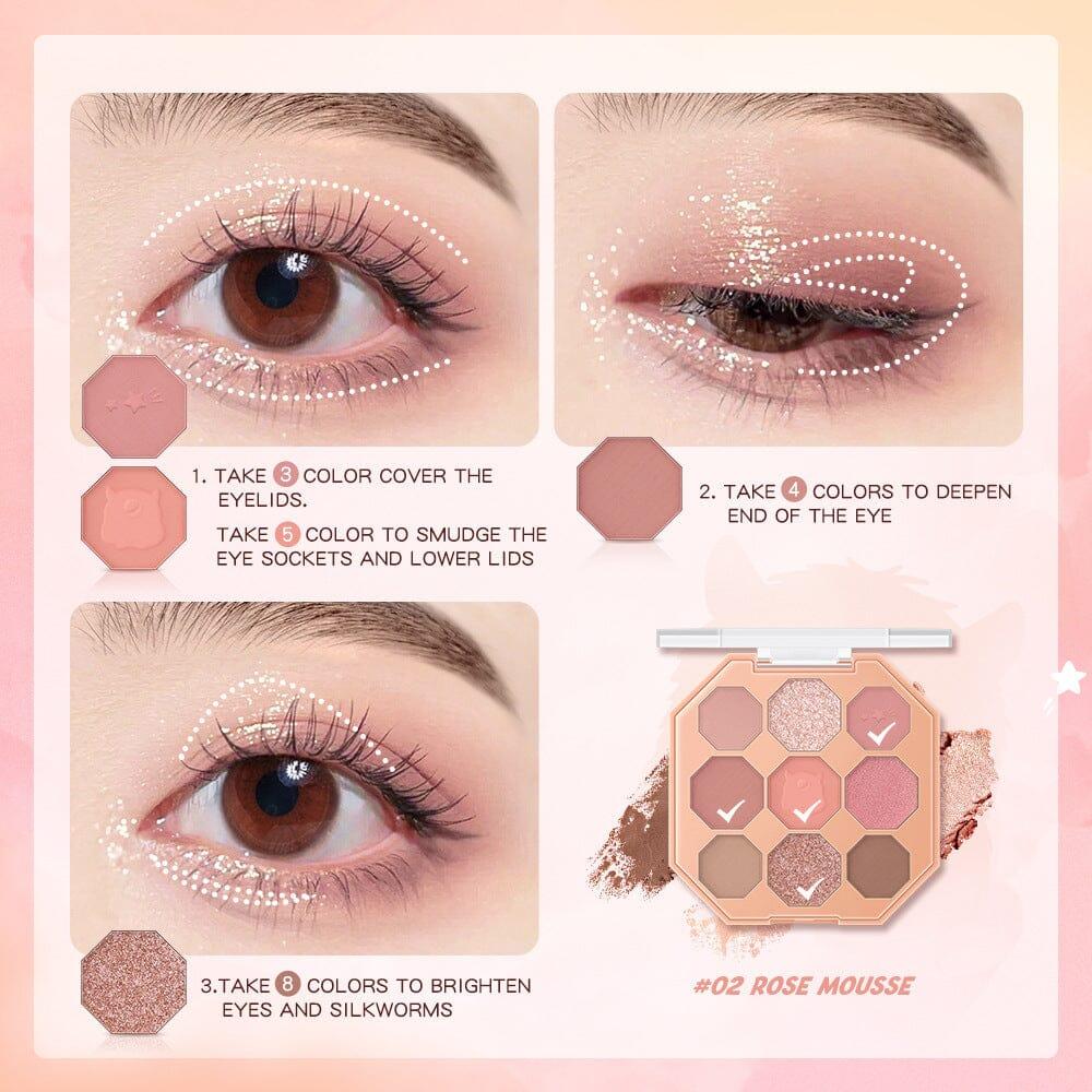 - Experience the rich and vibrant colors of our eyeshadow palette. featuring a total of 9 breathtaking shades.