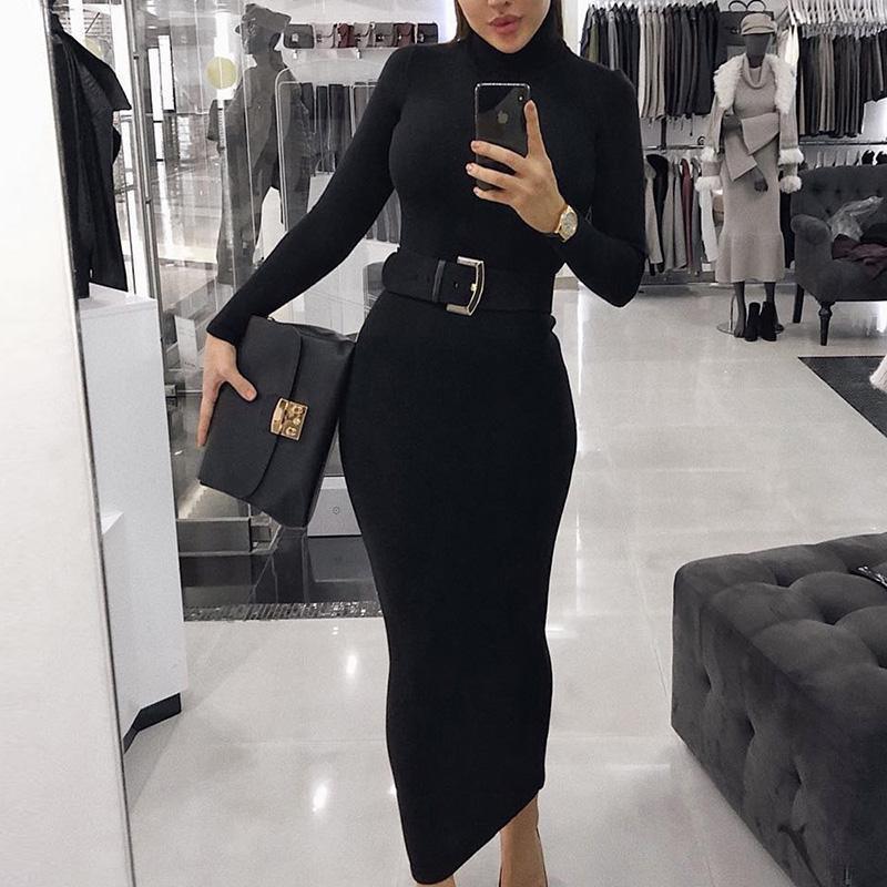 Redcit - Fashion Women Turtleneck Long Sleeve Dress