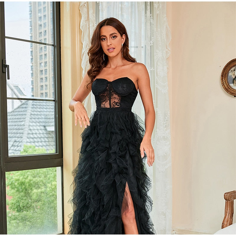 Redcit - Lace Mesh Off Shoulder High Waist Evening Dress