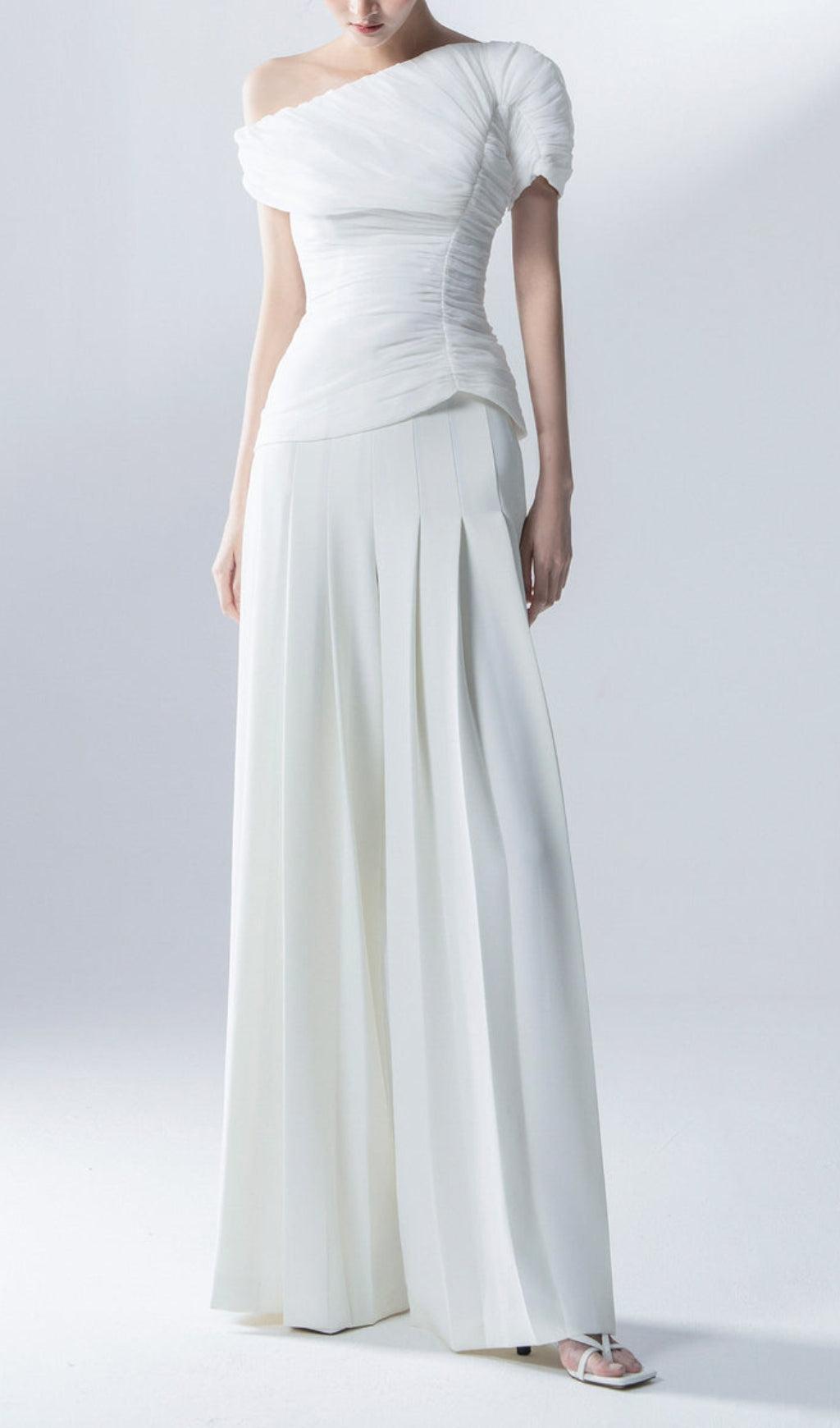 Get ready to turn heads in this playful and stylish Feather Pleated Two Pieces Suit. Made with high quality materials. this suit features feather pleated details that add a touch of whimsy to any outfit. Perfect for any occasion. this suit will have you feeling confident. comfortable. and uniquely stylish.
