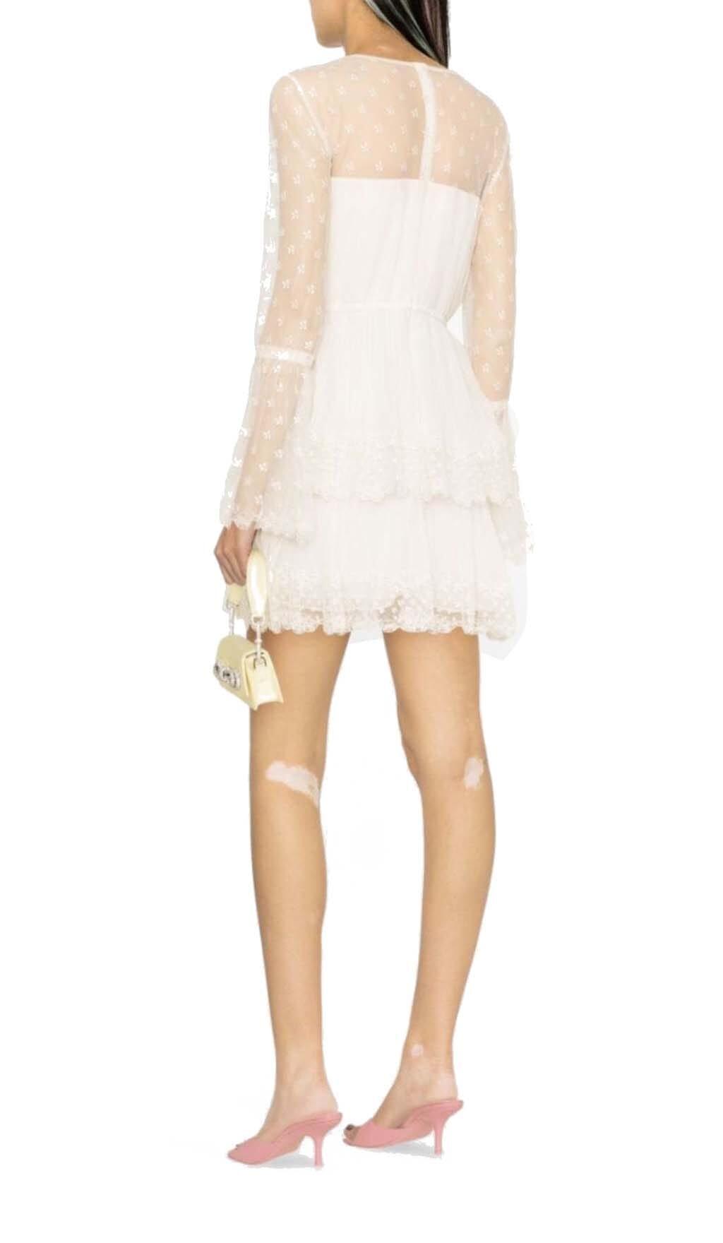 FLORAL-LACE TIERED MIDI DRESS IN IVORY
