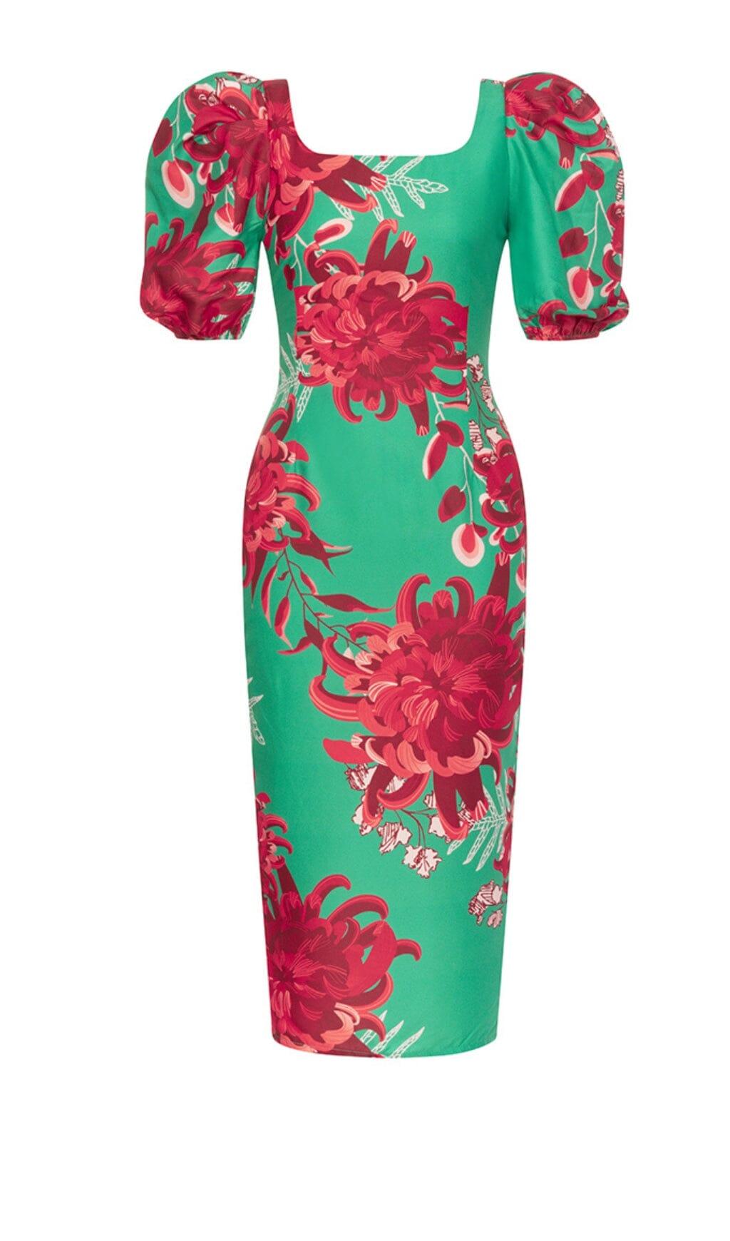 Elevate your style with our Floral Print Puff Sleeved Open Back Midi Dress in Green. This dress is the perfect addition to your wardrobe. offering a refreshing and vibrant look.