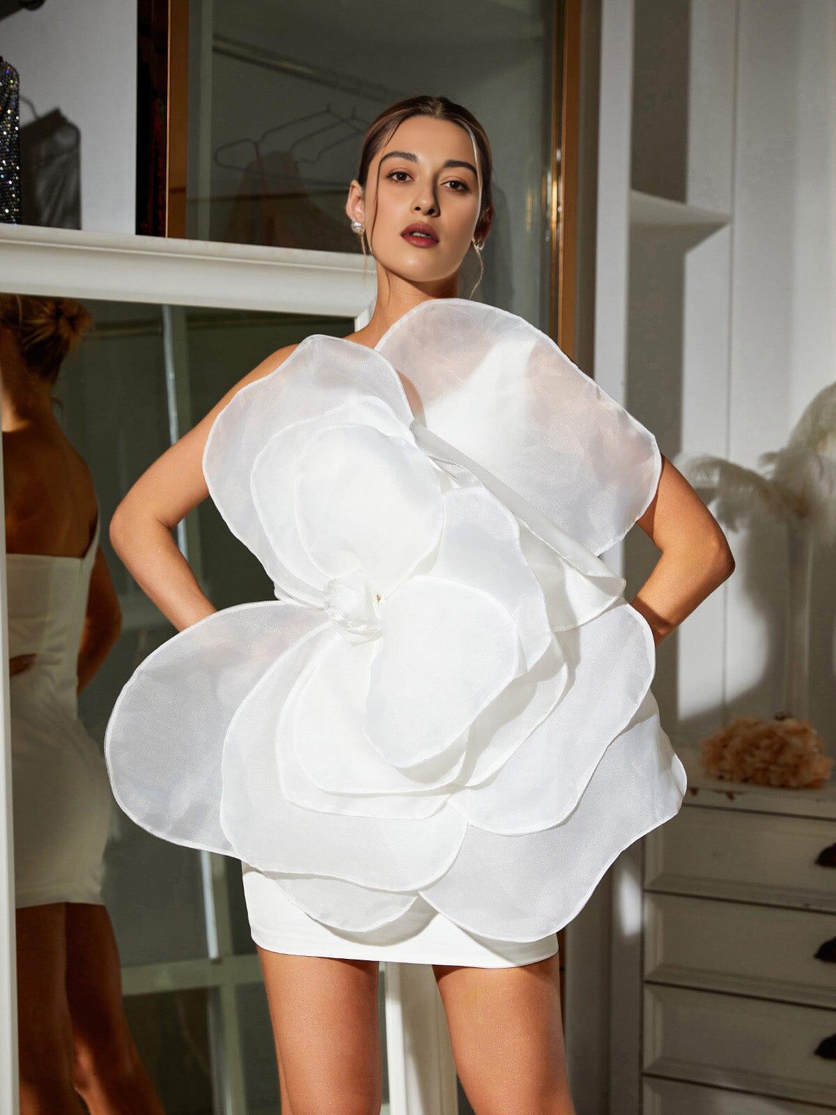 Don't settle for ordinary. Choose our One Shoulder Flower Mini Dress and make a statement at your next special event.