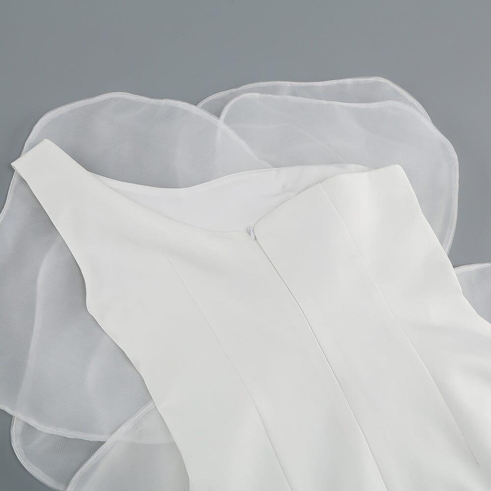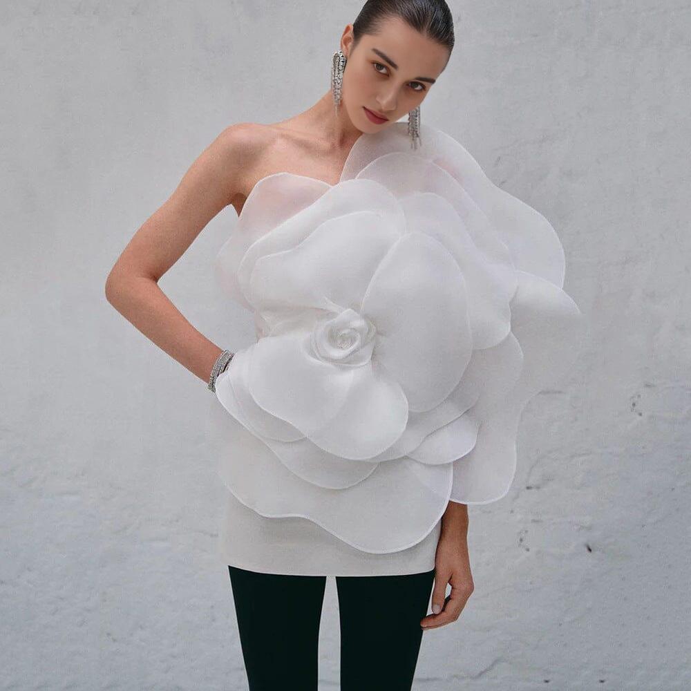 Stand out from the crowd and exude elegance with our One Shoulder Flower Mini Dress. This dress features an intricate floral design and a unique one shoulder design. making it the perfect choice for any special occasion.