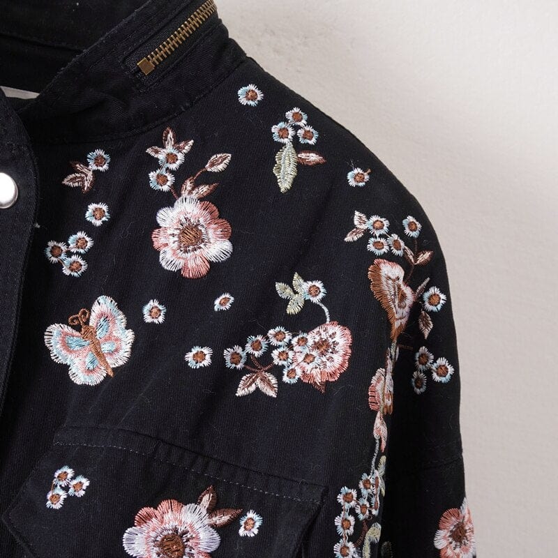 Gardenia Embroidery Coat is a gorgeous coat perfect for spring and summer. Gardenia Embroidery Coat follows your body's shape with ease and is designed to layer with a fitted top or light sweater. Made for those days when it could rain but you still want to look cute and put together. Style with anything. this coat turns head but keeps it simple.