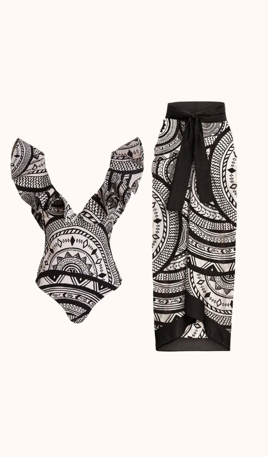 Elevate your beach style with the Georgianna Ruffle Printed Swimwear Two Piece Set. Get ready to make a splash and feel confident in this unique and fashionable swimwear set. Order yours today!