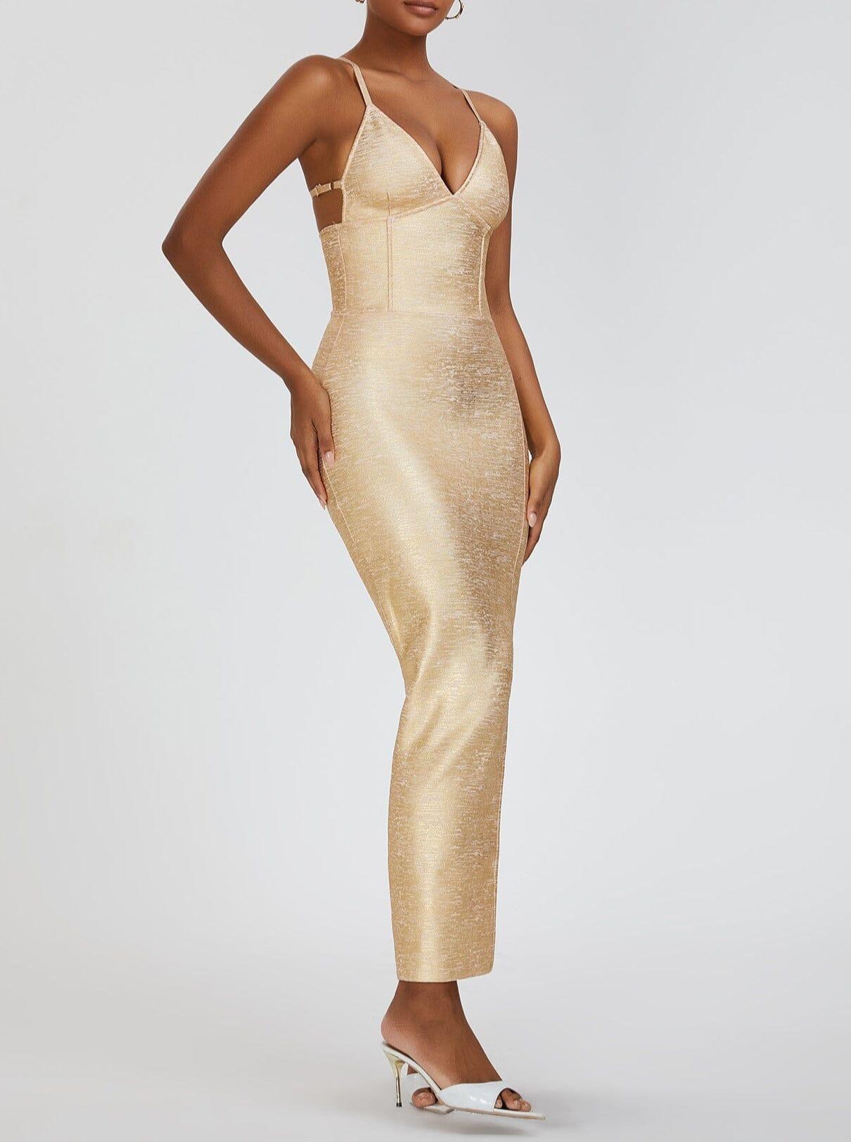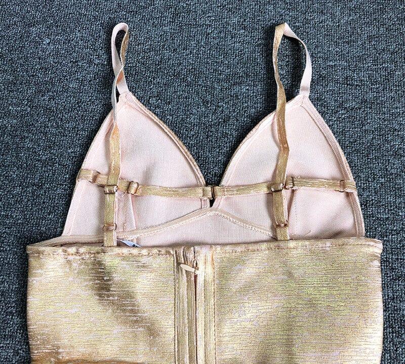 Get ready to turn heads in our dress! Show off your playful side with its unique cut and stunning gold color. This dress will effortlessly elevate your style. making you the center of attention. Perfect for a night out or special occasion. this dress is a must-have in your wardrobe.