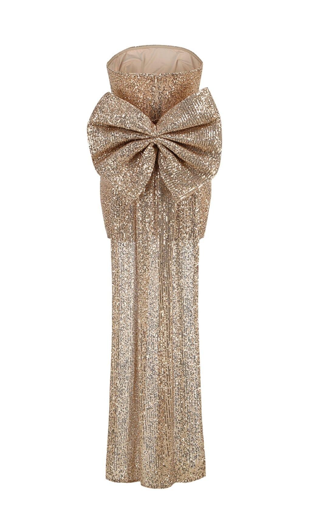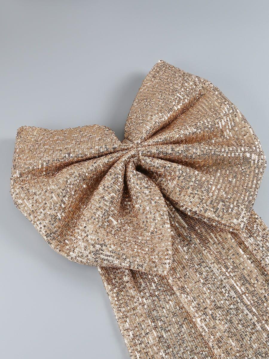 Unleash your daring side with our Gold Strapless Bow Mini Dress! Let the golden hue and striking strapless design set you apart from the crowd. The bold bow adds a touch of femininity. while the mini length shows off your legs. Perfect for making a statement and taking risks!