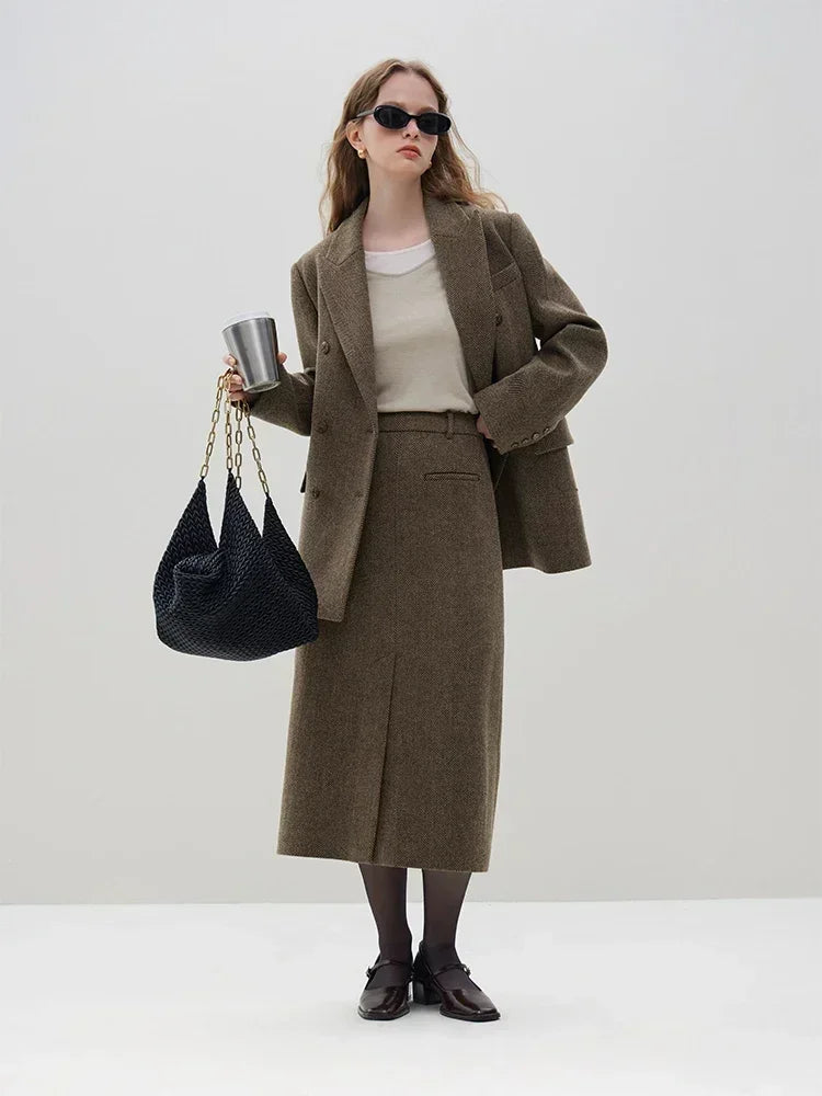 Graceful Double Brested Wool Front Spilt Top