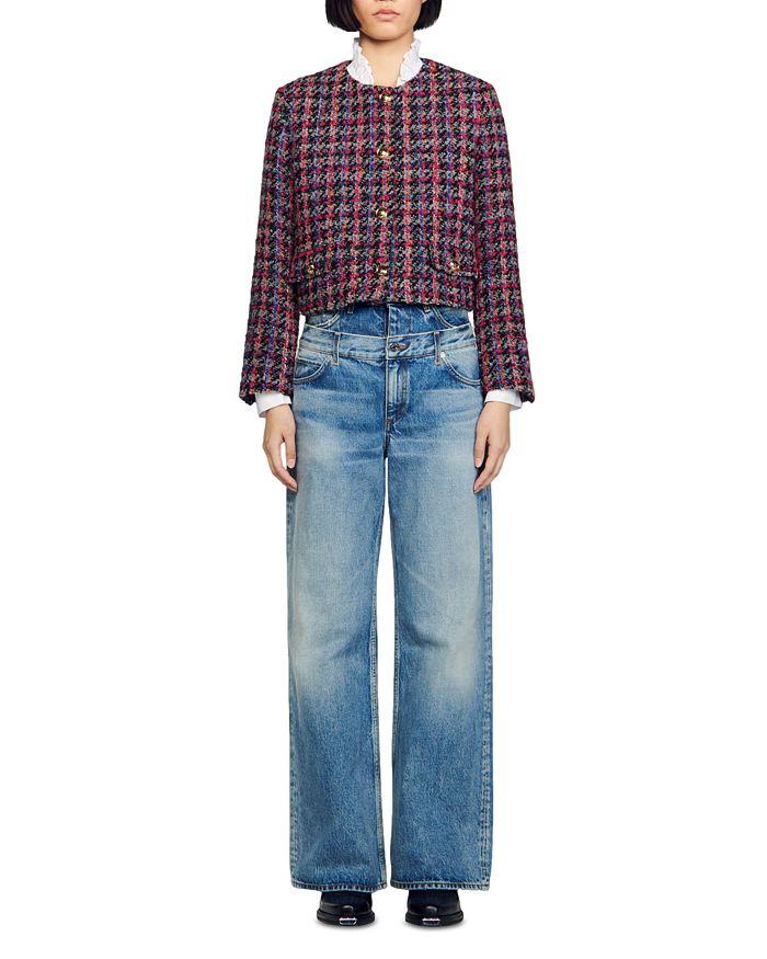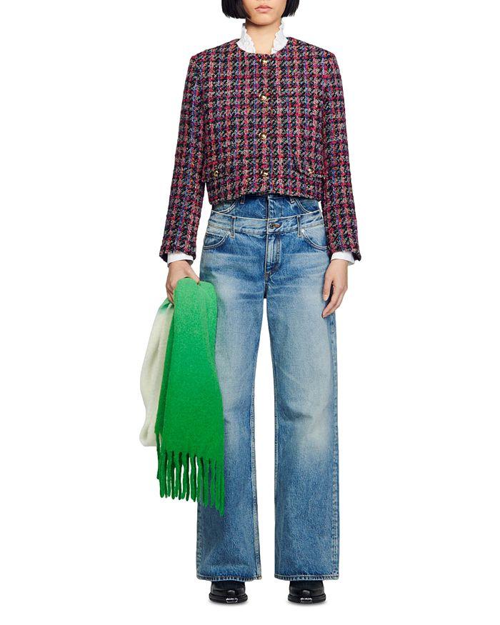 This stylish and versatile jacket features a unique combination of grey and pink tones in a chic tweed fabric. Its timeless design and high-quality materials make it a must-have for any fashion-forward individual. Add a touch of sophistication to any outfit with this luxurious jacket.