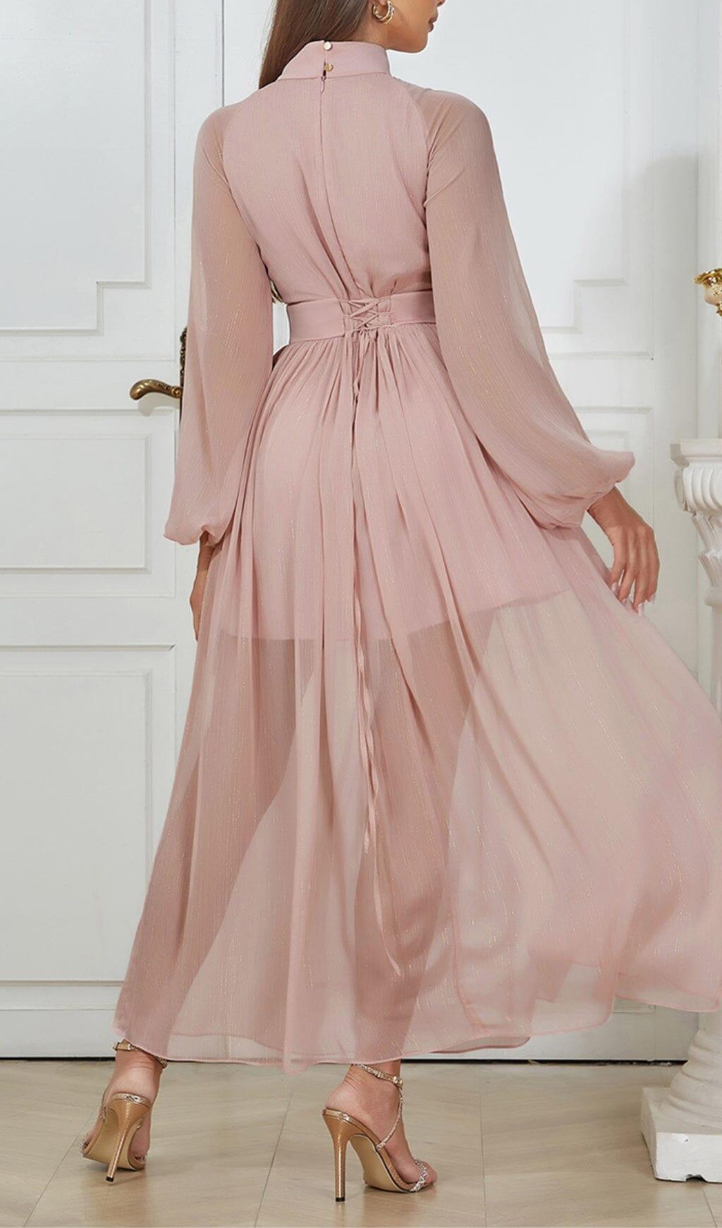 This HALF TURTLENECK PUFF LONG SLEEVE WAISTED MESH DRESS is a sophisticated and chic garment that combines timeless elegance and modern style. Crafted from breathable mesh. the waist-defining figure-hugging silhouette is designed to flatter every body type. with half turtleneck styling and statement puff long sleeves. An exquisite must-have for any luxury wardrobe.
