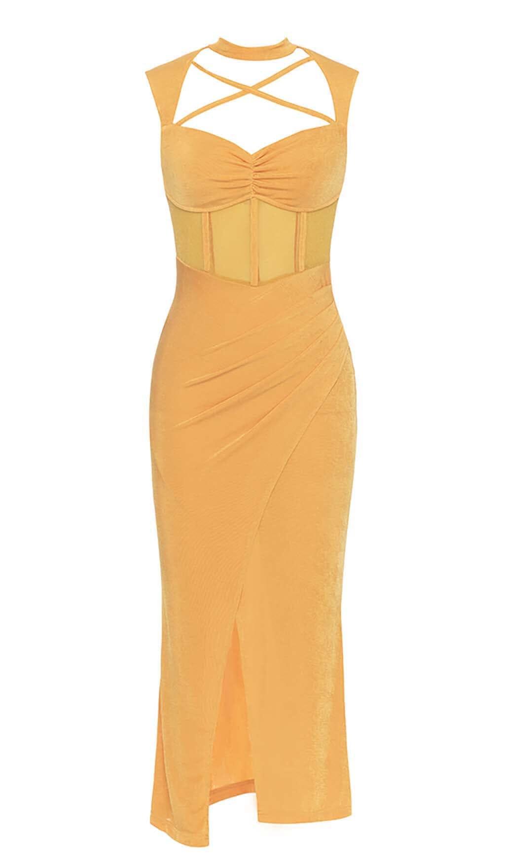 HALTER BANDAGE MIDI DRESS IN YELLOW