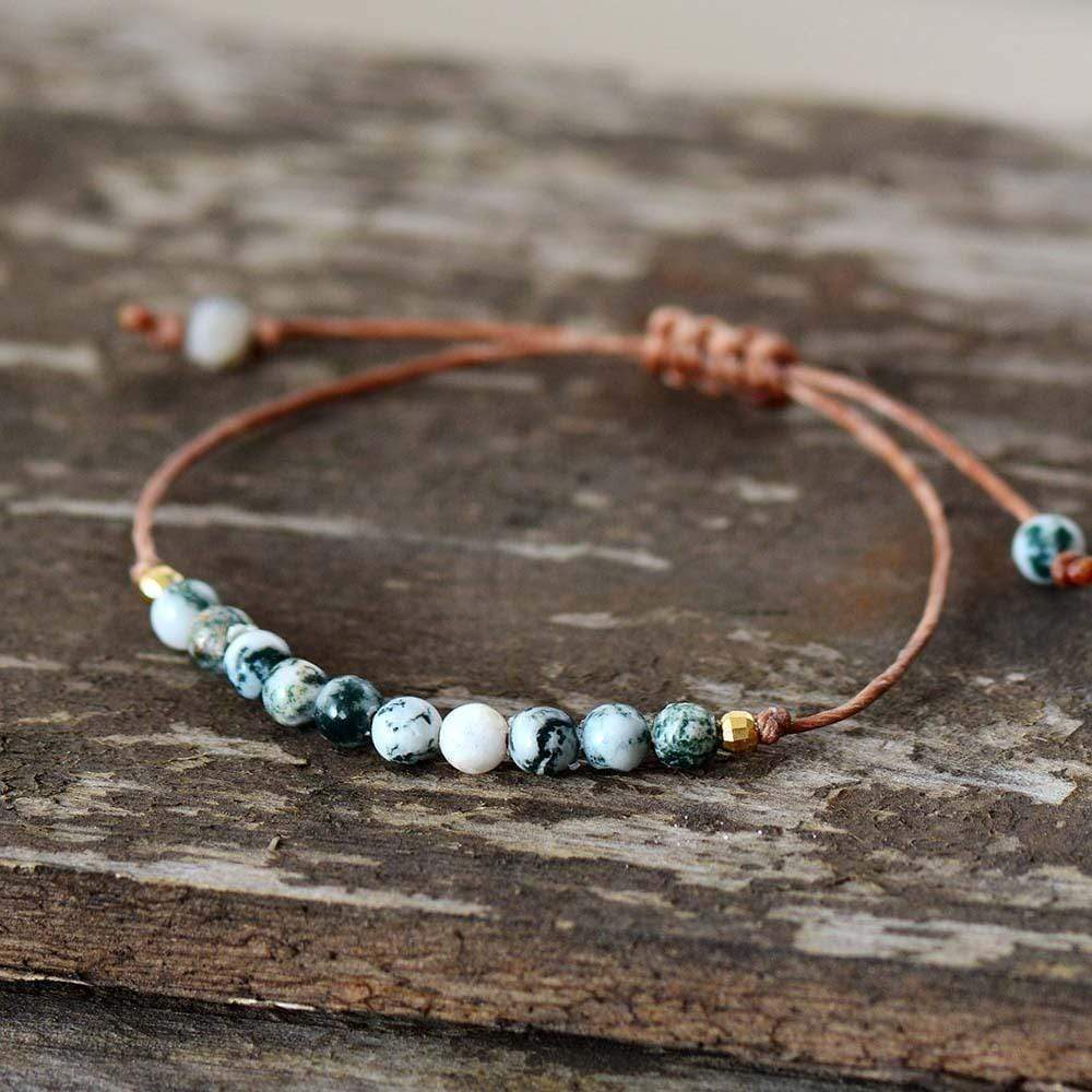 About: This wonderful bracelet is carefully handmade with Natural Tree Agate stone beads and durable wax cord. It is adjustable to your wrist.
