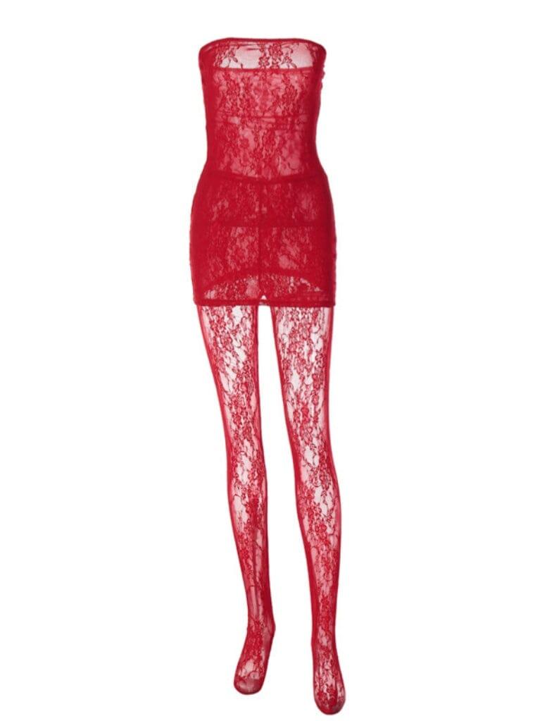 This Strapless Lace Mini Dress in Red will bring warmth and vibrancy to your wardrobe. Its enchanting design features a strapless neckline with luxurious lace fabric for an elegant and timeless look. The vibrant red color will help make you stand out at any event. Perfect for Halloween. this dress will be the focus of your night.