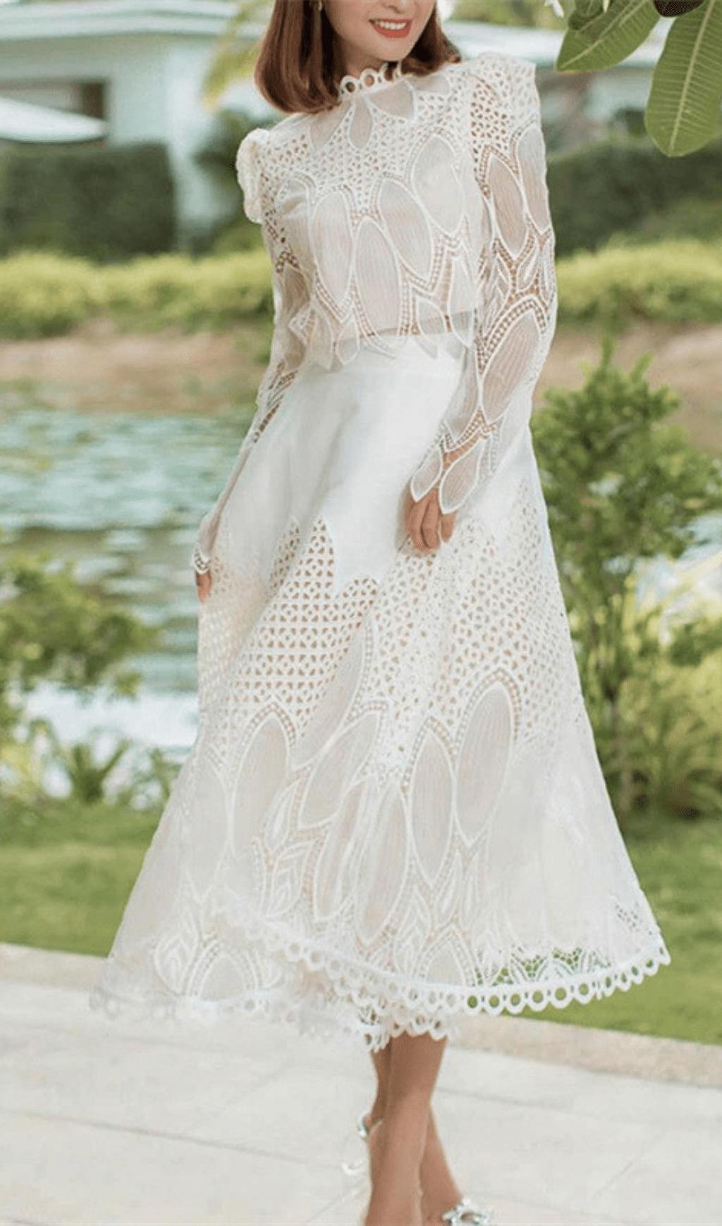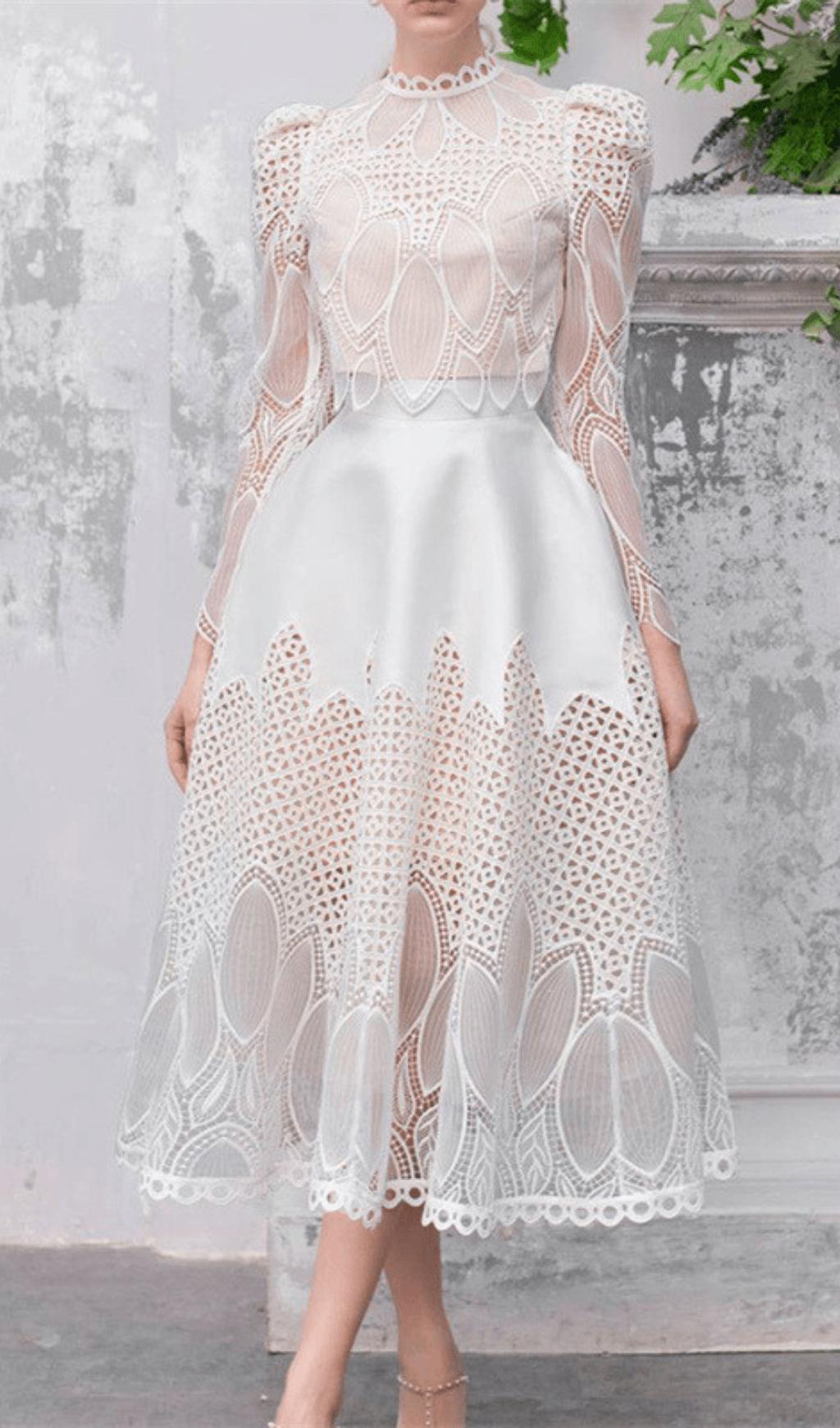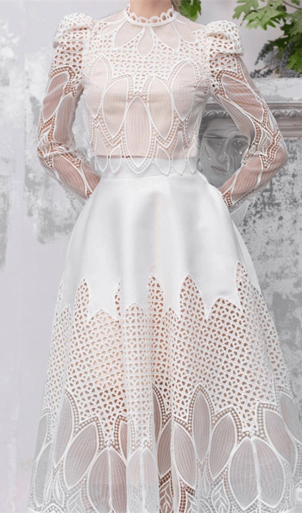 This mini dress brings together contemporary style with a hint of retro flair. The lace stand-up collar and puff-sleeves create a unique look. while the high waist offers a flattering silhouette. Crafted with heavy-duty fabric for a sturdy feel. this dress is perfect for any occasion.
