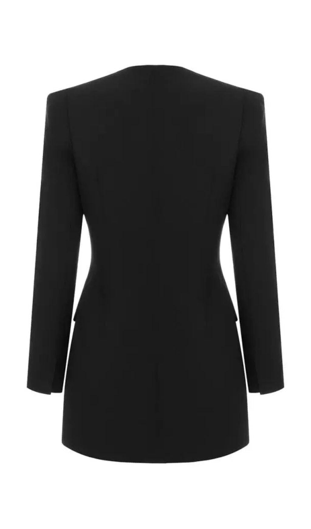 - The hollow draped tuxedo design sets this dress apart from others. giving it a chic and modern twist.