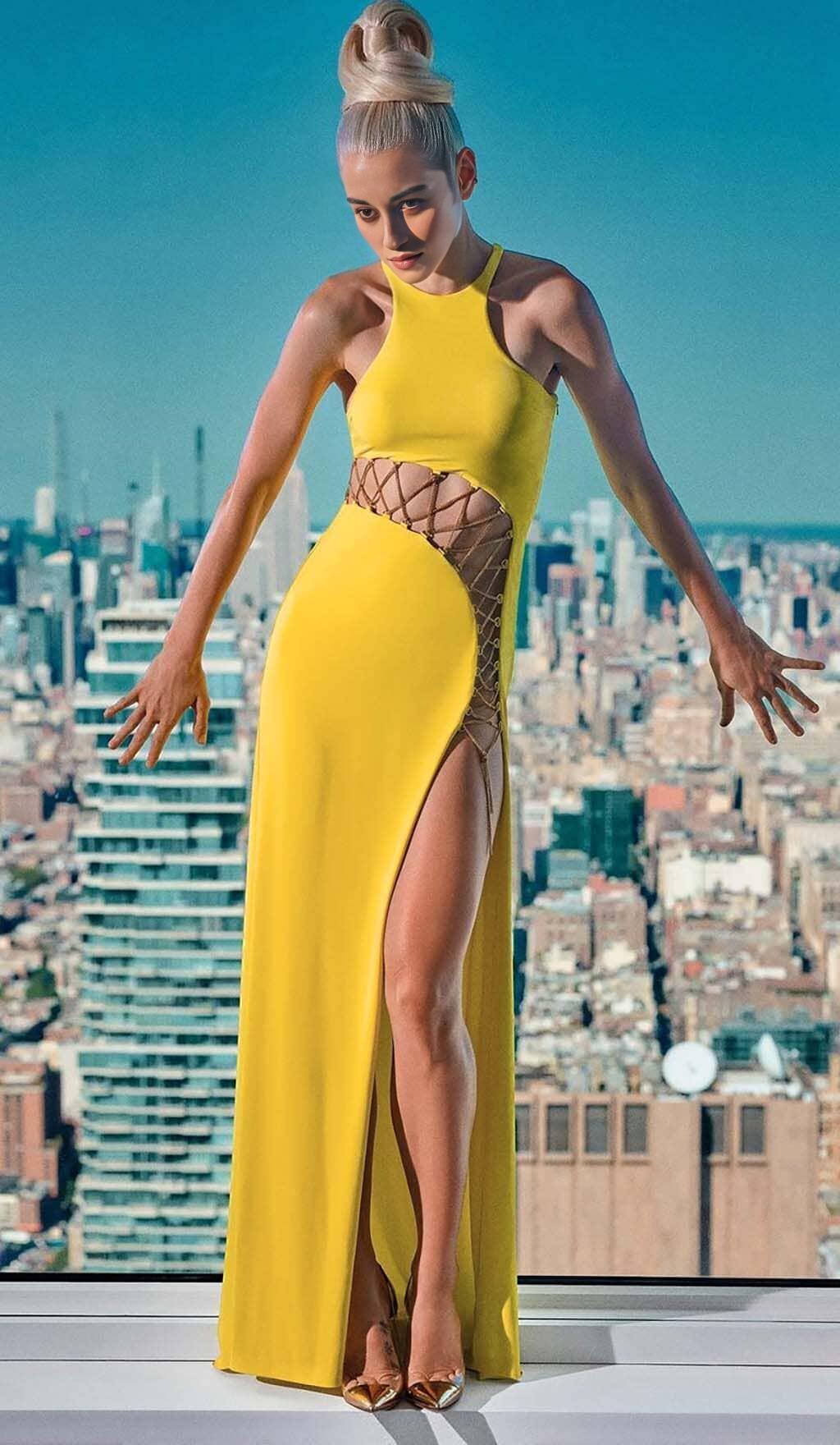 Looking for a flowy maxi dress that'll make you feel like a goddess? Look no further! Our HOLLOW HIGH SPLIT MAXI DRESS IN YELLOW is made from a lightweight fabric that'll keep you comfortable all day or night. The vibrant yellow color is perfect for adding a pop of brightness to your wardrobe.