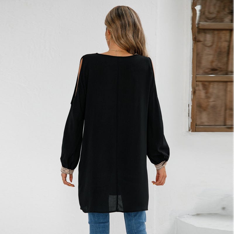 Let your inner flower child bloom in this Honeysuckle Boho Mini Dress! Featuring dreamy lace details at the neckline and cuffs. a V-Neck and long cutout sleeves. it's a definite must-have for bohemian babes. The lightweight polyester is perfect for Spring and Fall days. and the loose fit is oh-so comfy! Go ahead and get your flower power on!