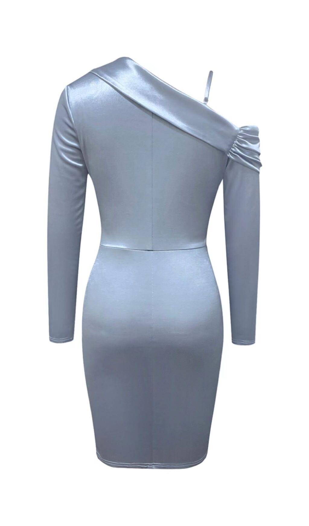 Elevate your style and embrace your femininity with our Irregular Off Shoulder Flounces Dress in Gray-Blue. Order now and make a statement wherever you go!
