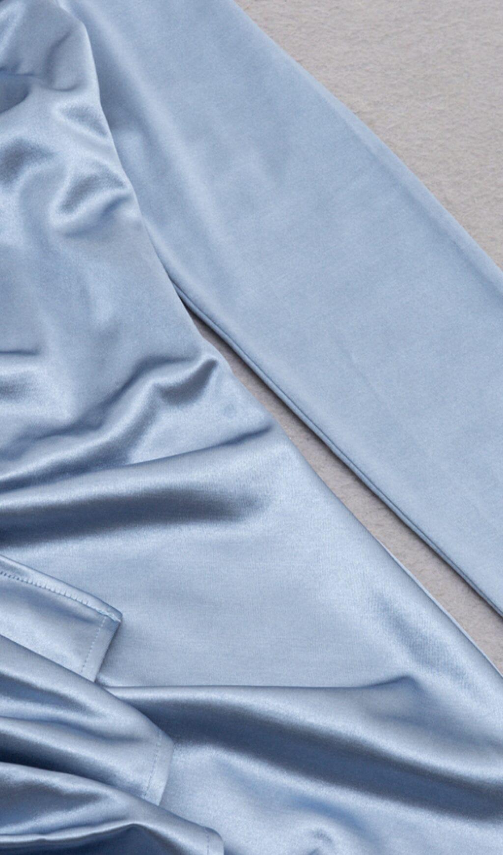 Step into a world of timeless glamour and delicate femininity with our Irregular Off Shoulder Flounces Dress in Gray-Blue. Crafted from soft grey-blue fabric. this dress exudes an elegant and glamorous luster that will catch everyone's eye under any light. Whether you're attending a date night or a special occasion. this dress is the perfect choice to make a lasting impression.