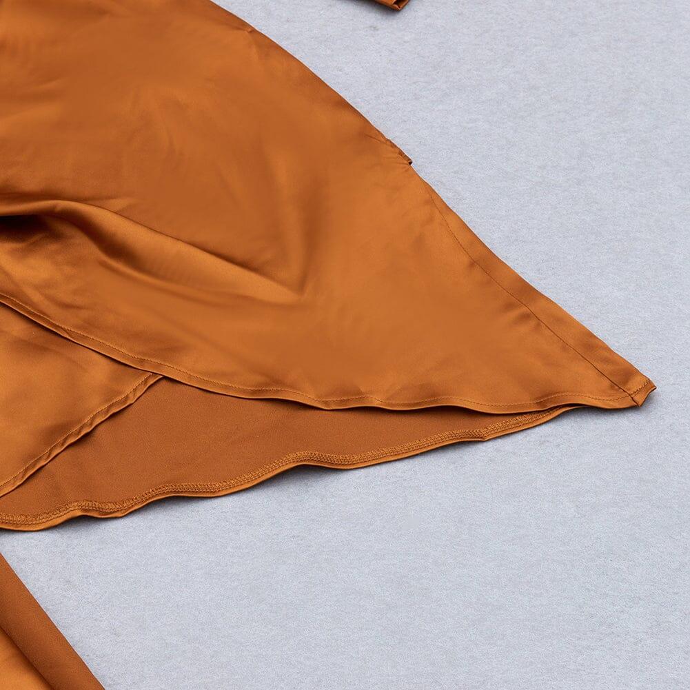 Irregular Ruffled Buttock Wrap Dress in Caramel