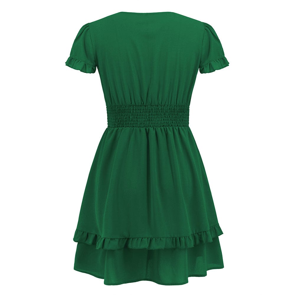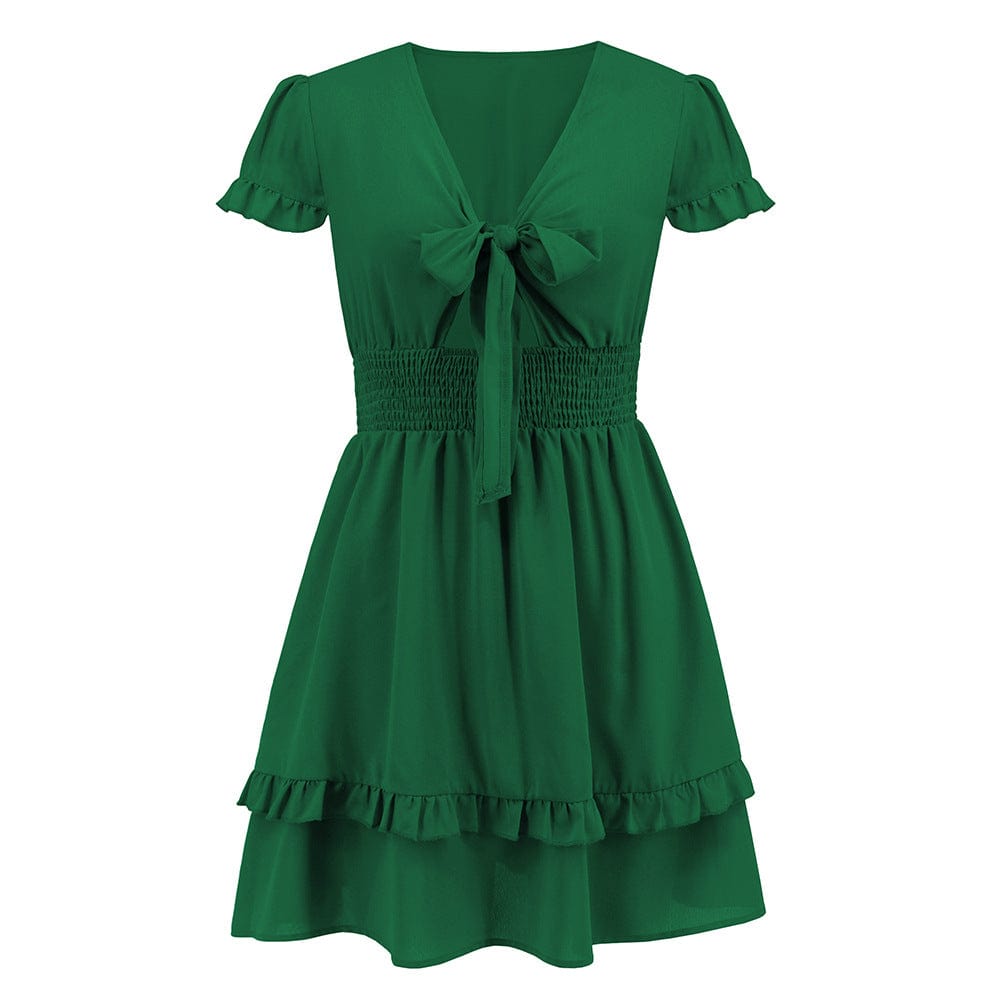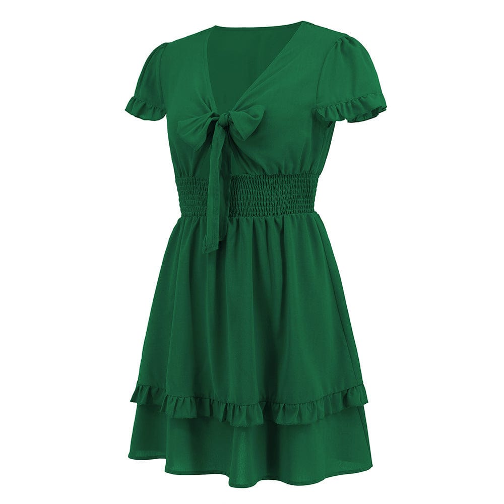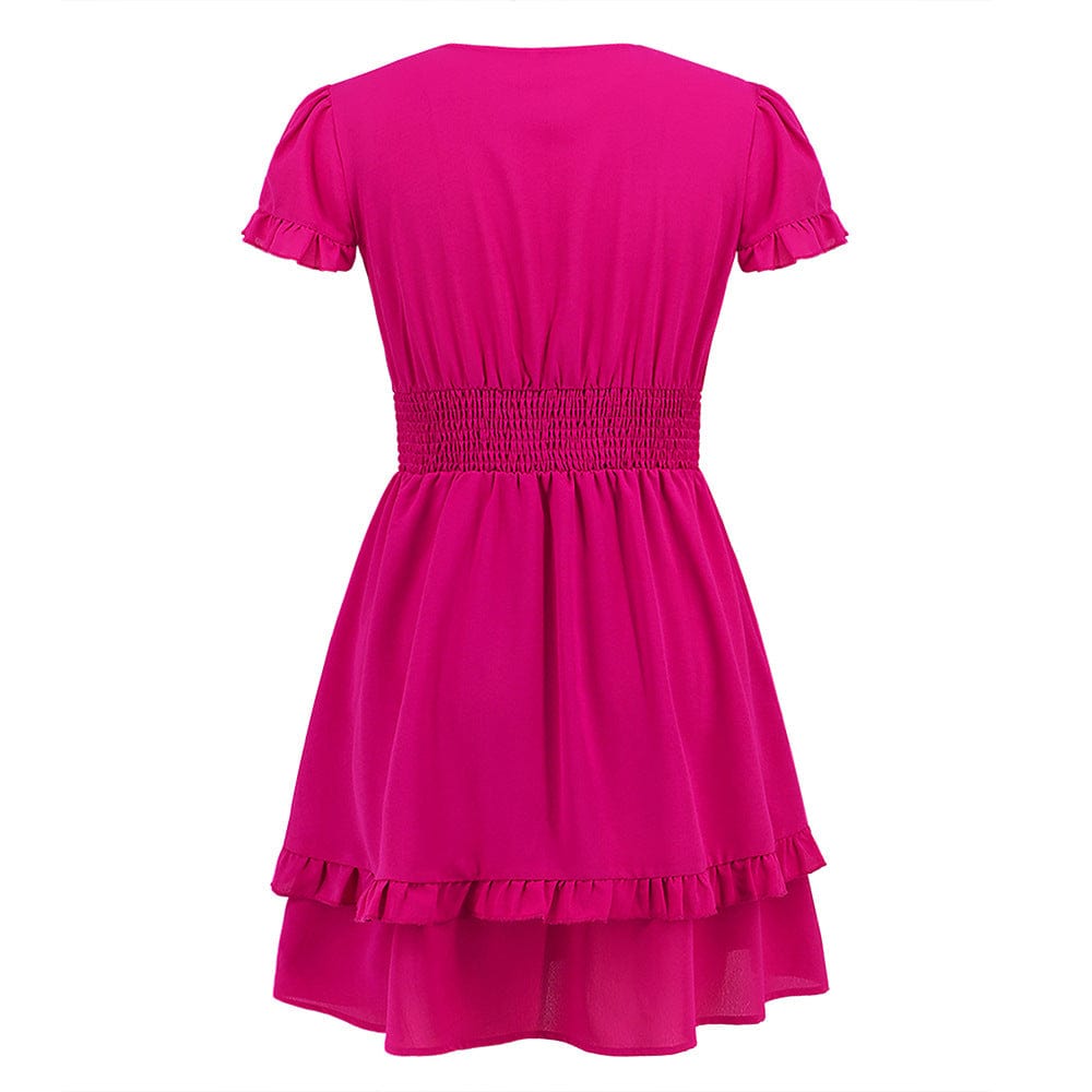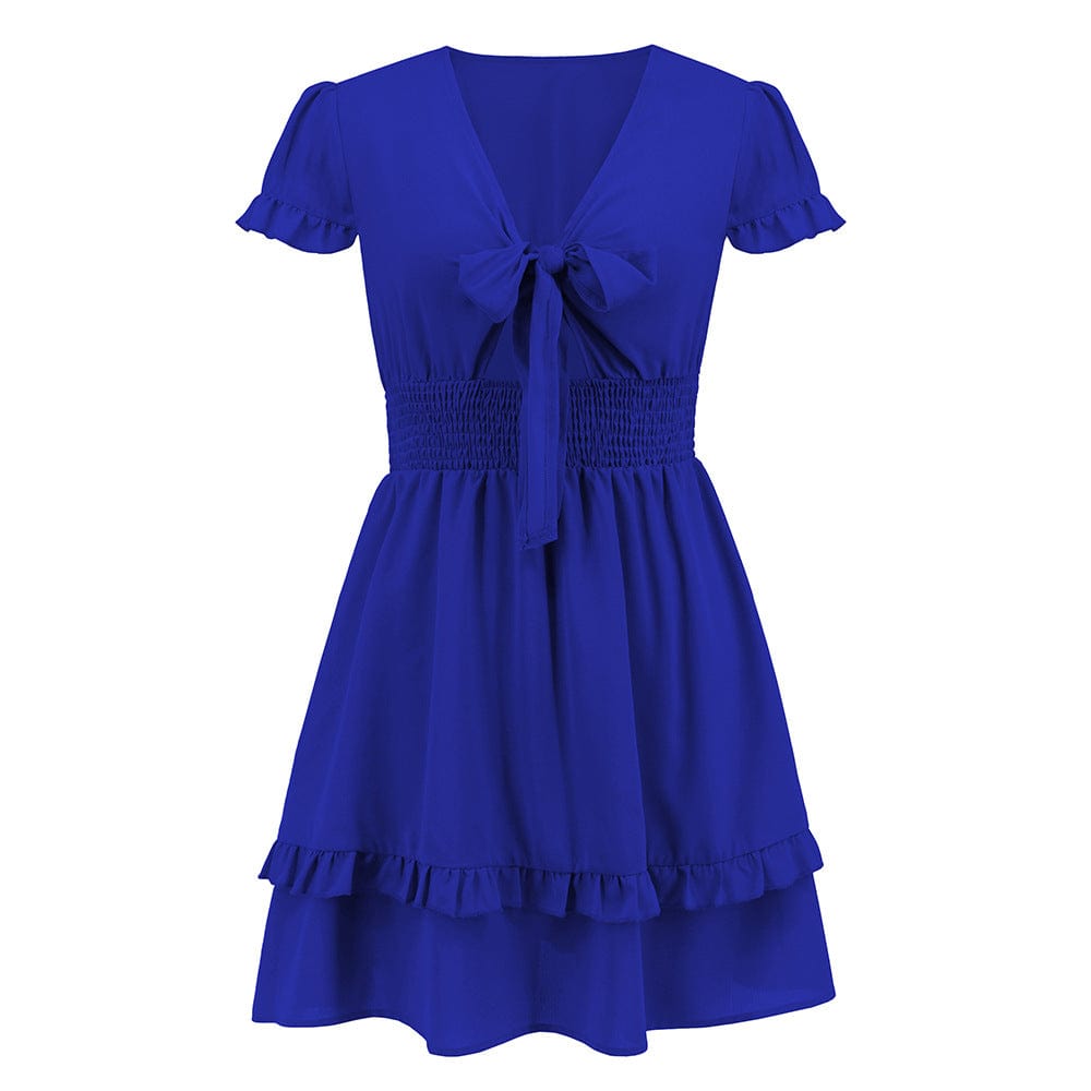 The Kassandra Boho Mini Dress is the perfect Summer stunner! Bring out your style with this eye-catching dress featuring a v-neckline with ties and a ruffled skirt. Let loose with its elasticized waistline and short-sleeve construction - you'll be feeling the breeze in no time! Get ready to flaunt your summer look!