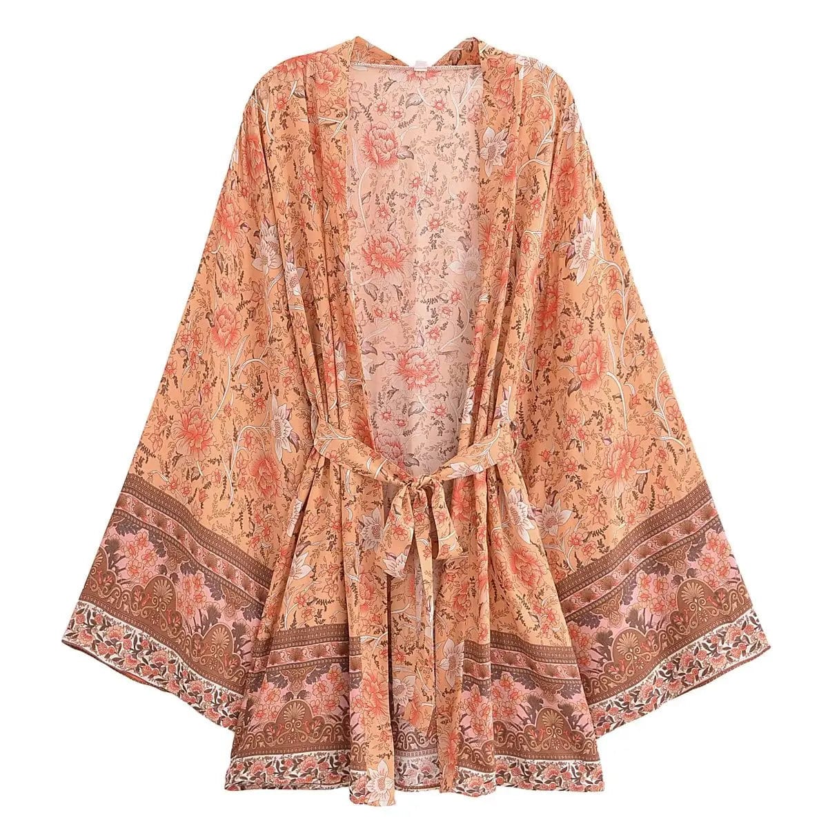 Lightweight and comfortable. this Kassidy Floral Kimono Robe is crafted from a luxury blend of cotton and rayon in a beautiful bohemian floral print. With a matching sash for cinching your waist. you'll look elegant all day long.