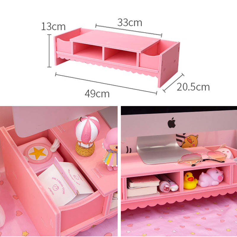 A great alternative to those bulky desk organizers is this Kawaii Laptop Wood Shelf Desk Organiser. It is carefully designed with efficiency and cute build in mind to suit the needs of kawaii people.
