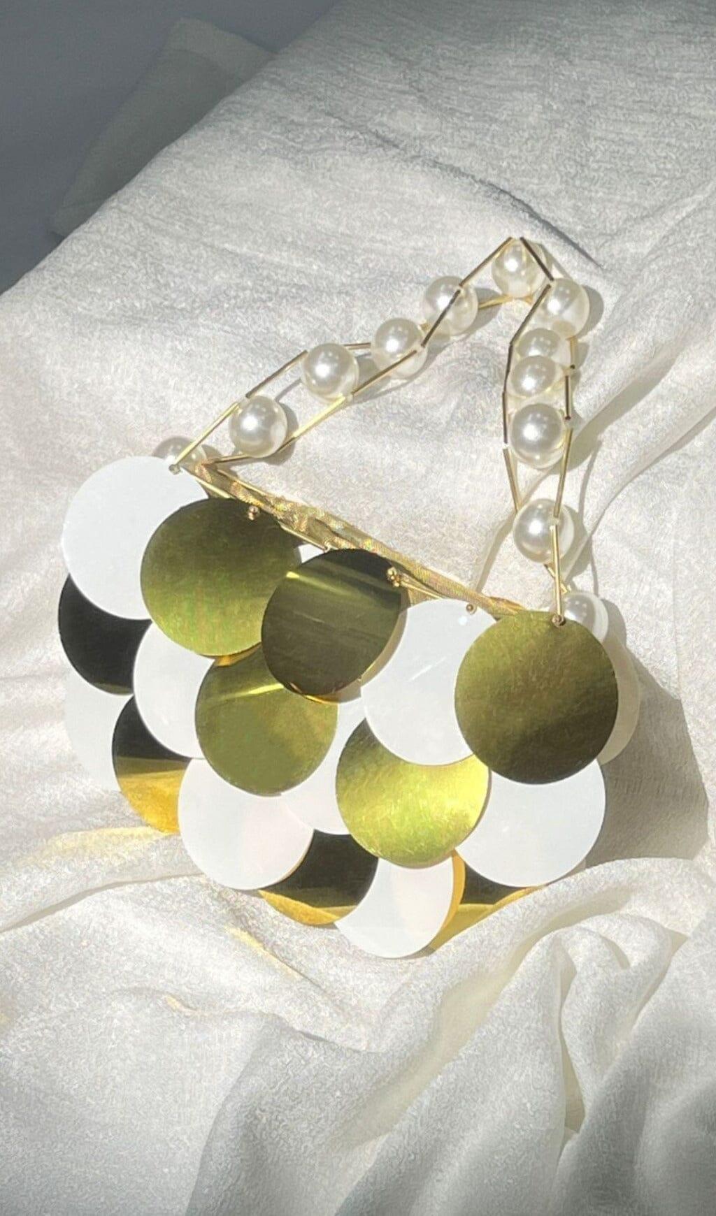 This elegant Circle Embellished Pearl Chain Clutch is made from high-quality materials and features a luxurious pearl-embellished chain. The perfect accessory for an evening look. this clutch offers an effortless look with maximum style.