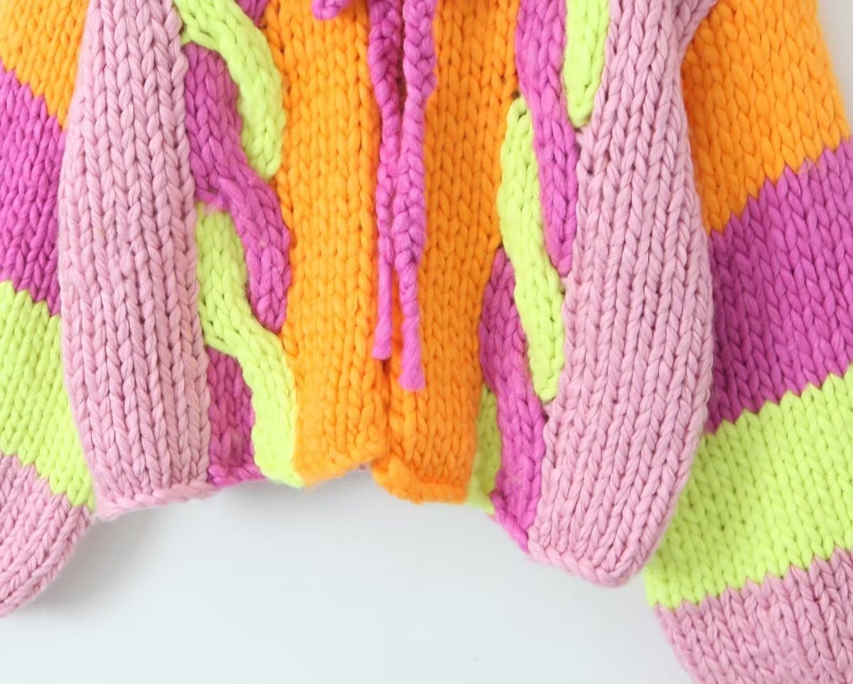 About: Wrap yourself in color and comfort with our Lacey Handmade Knitted Cardigan. Bursting with a vibrant palette. this cardigan adds a playful touch to any outfit. Handcrafted with care. it's your go-to for coziness on chilly days and a standout piece for expressing your unique style effortlessly.