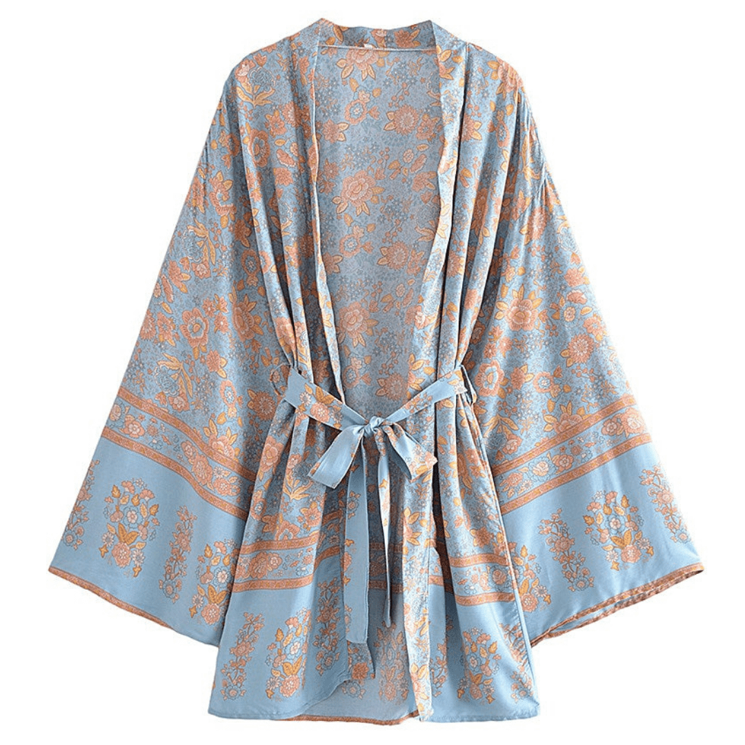 This must-have kimono from Boho Love Collection has a charming floral print with an open. tie-waist form. making it the ideal necessity.