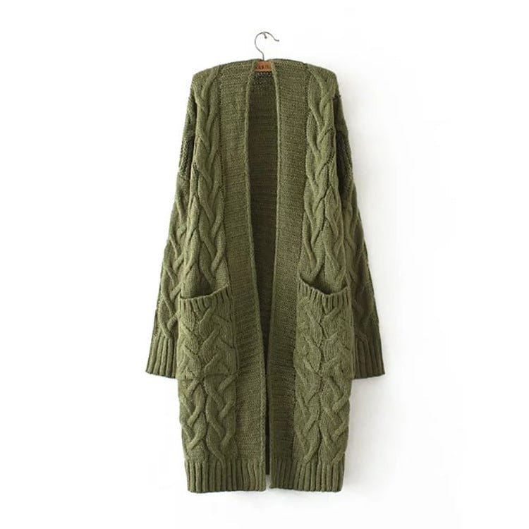 Stay warm and look fashionable with Lirael Twist Knitted Cardigan! With a playful cable-knit pattern and cozy. thick material. you'll be the trendiest one on the block. Plus. two front pockets let you stash those essentials while keeping your hands toasty! Who said winter has to be boring?