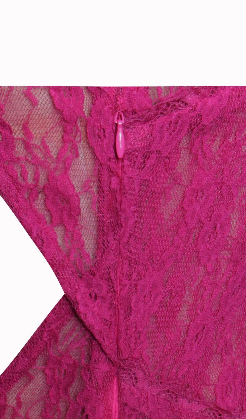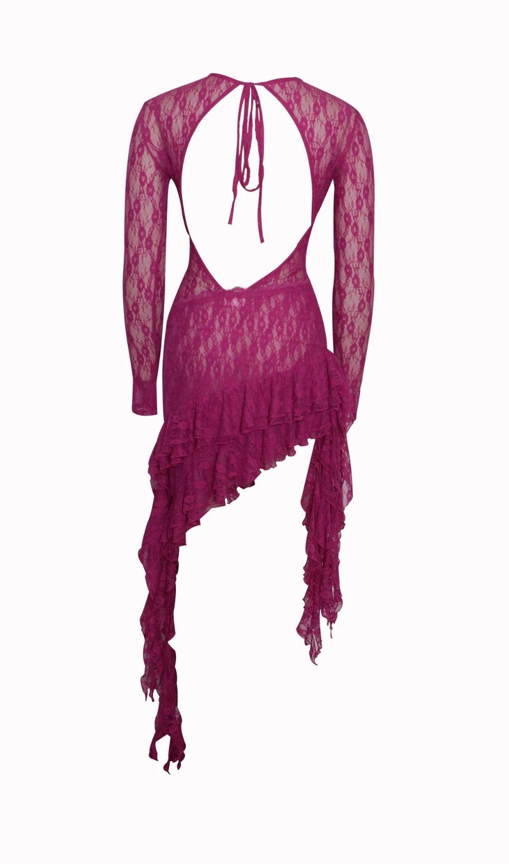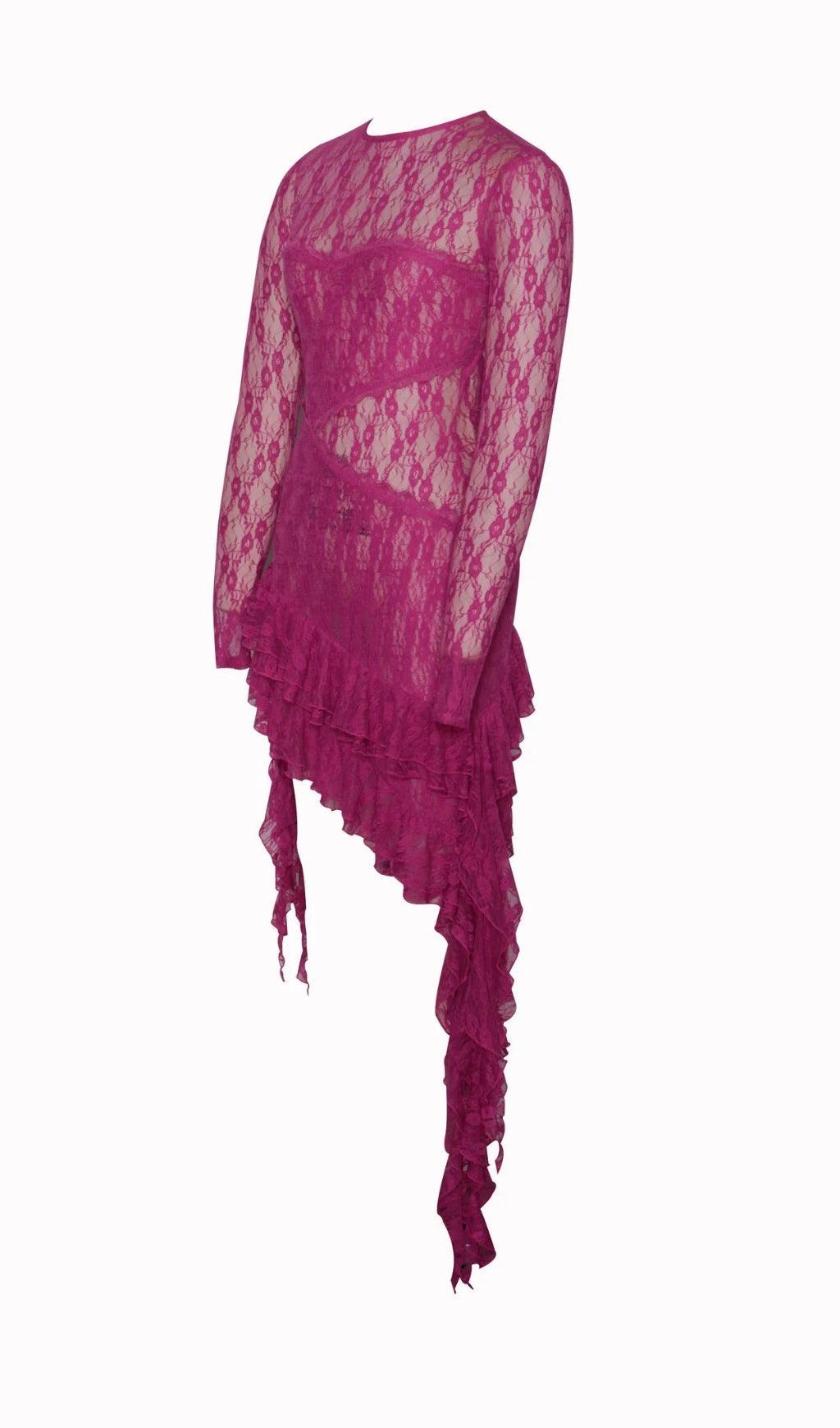The Long Sleeve Ruffle Lace Dress features an elegant design with delicate ruffle lace and a vibrant hot pink color. The long sleeves add a touch of sophistication. making it perfect for any formal occasion. Made with high-quality materials. this dress is both comfortable and stylish. Add a pop of color to your wardrobe and make a statement with this stunning dress.