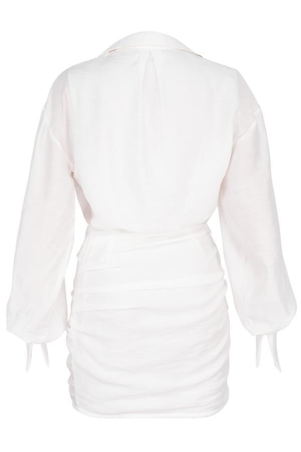 Introducing our White Long Sleeve Shirt Dress. a versatile and stylish addition to your wardrobe. This dress is designed with a low neckline and lapel. giving it a touch of sophistication. The inner layer is lined with elastic woven fabric. ensuring a secure and slip-free fit.