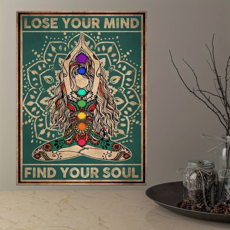 Bring a burst of vibrant color and some mindful motivation into your home when you hang this Lose Your Mind Find Your Soul wall poster! Featuring a sunny yoga lady in a meditative pose and a meaningful life quote written in waterproof ink on high quality paper. this poster will add some good vibes to any room. Namaste!