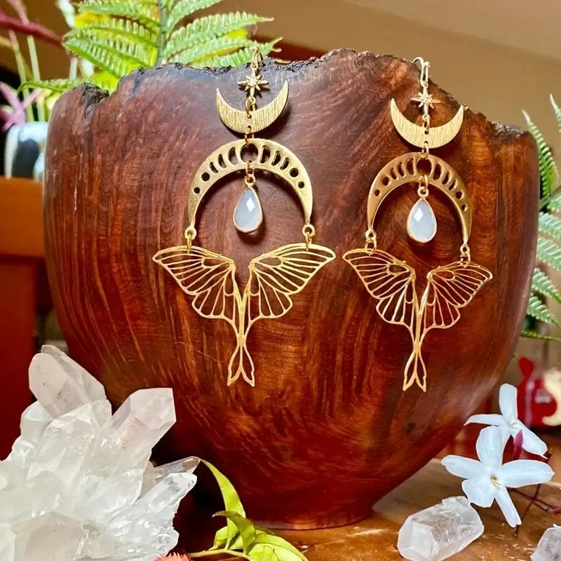 These Luna Moth Earrings feature a unique design that will make you stand out in any crowd. Crafted from quality zinc alloy. these hoop earrings are lightweight and comfortable for all-day wear! Add a touch of boho chic to any look with this versatile style - perfect for a night out or a casual day in. An ideal gift for any fashion-forward friend or family member. Get your perfect pair today!