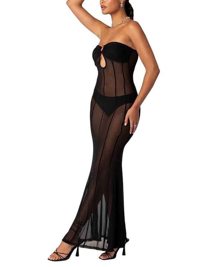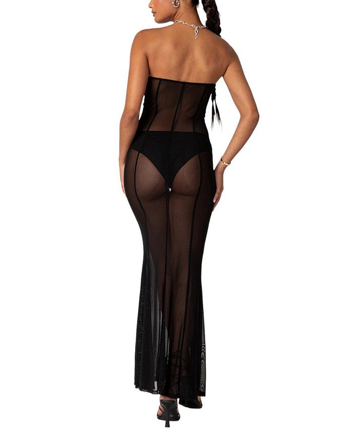 the perfect mix of sexy and sophisticated. With its sheer mesh material and flowy maxi length. this dress will turn heads at any event. Don't be afraid to show off your playful side and make a statement with this one-of-a-kind dress!