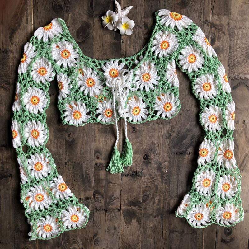 About: The Margarita Crop Top - hand-made. cotton. crochet. with beautiful daisy pattern details. This really is a collector's item with intricate. fabulous work.