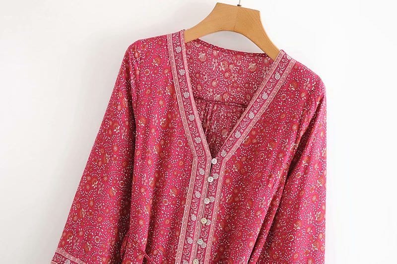Our Maxima Boho Maxi Dress in 3 colors is beautifully framed with a v neckline and three-quarter length sleeves. this piece is one you'll reach for on relaxed days with friends